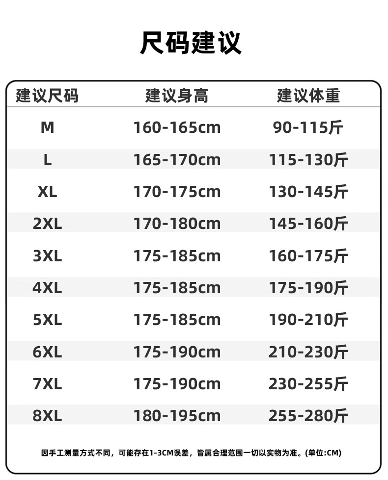 M; L; XL; 2XL; 3XL; 4XL; 5XL; 6XL; 7XL; 8XL
