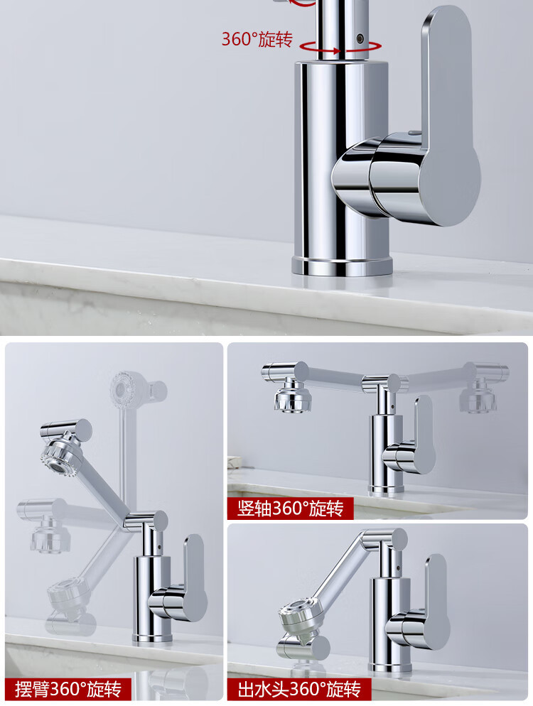 Трансграничный смеситель Lucky Cat, универсальный вращающийся смеситель из нержавеющей стали для кухни и ванной комнаты, многофункциональный смеситель для умывальника с горячей и холодной водой