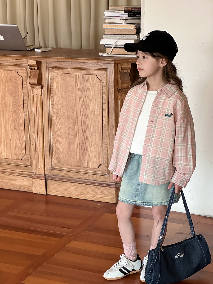 Aimo Bebe Childring's New Spring 2025 для девочек Корейская розовая рубашка мультфильм вышивка щенок клетчатая рубашка
