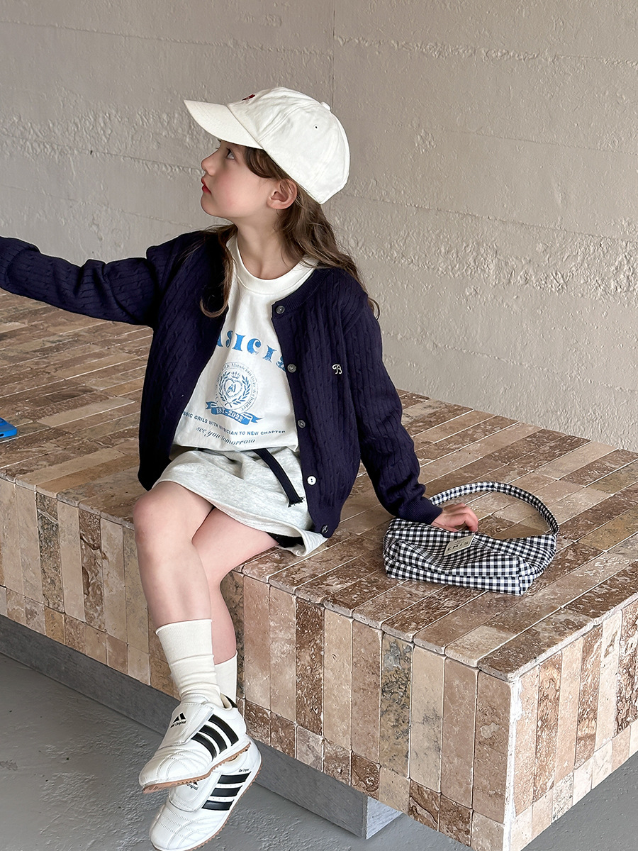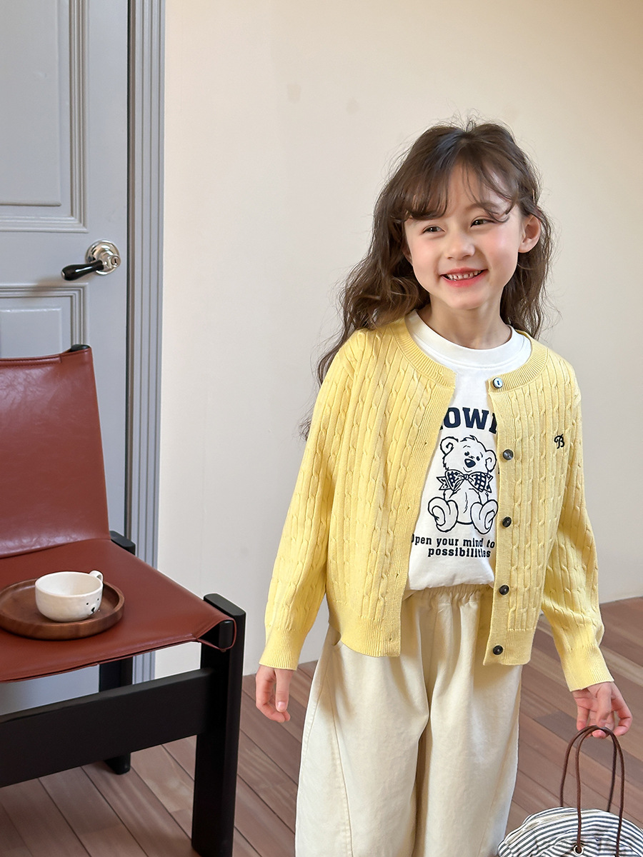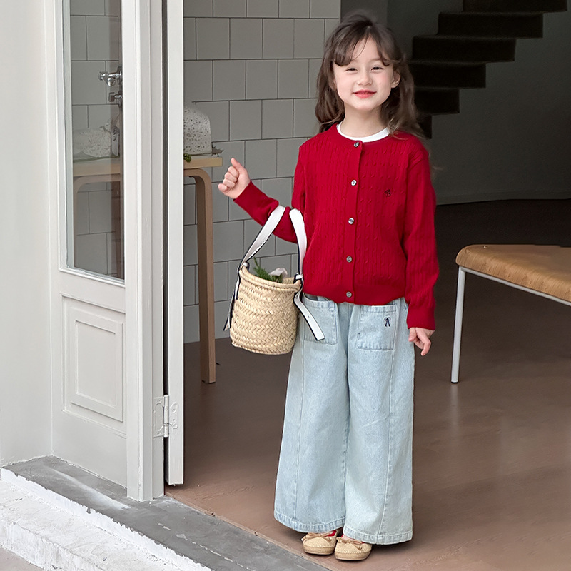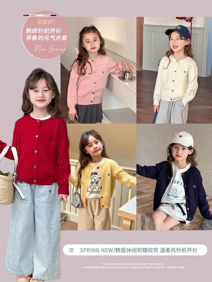 Aimo Bebe 2025 Ранняя весна для девочек Корейская версия повседневного иностранного свитера с вышивкой трикотажный кардиган