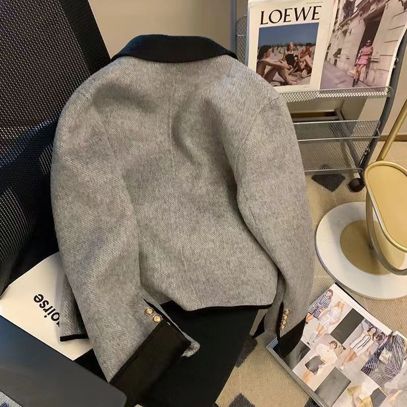 Little Xiangfeng Короткий жареный уличный серый пиджак женский осенний и зимний ретро продвинутый дизайн чувство нишевый темперамент с длинными рукавами