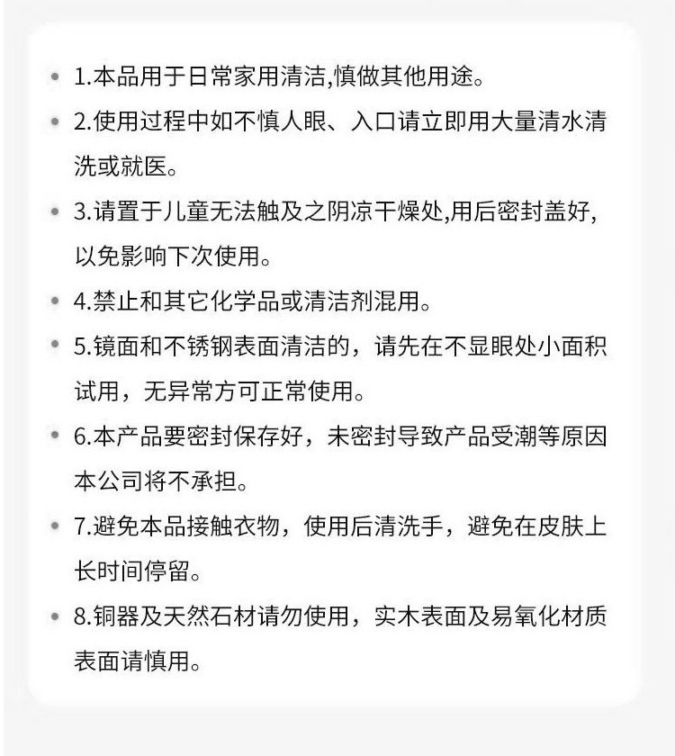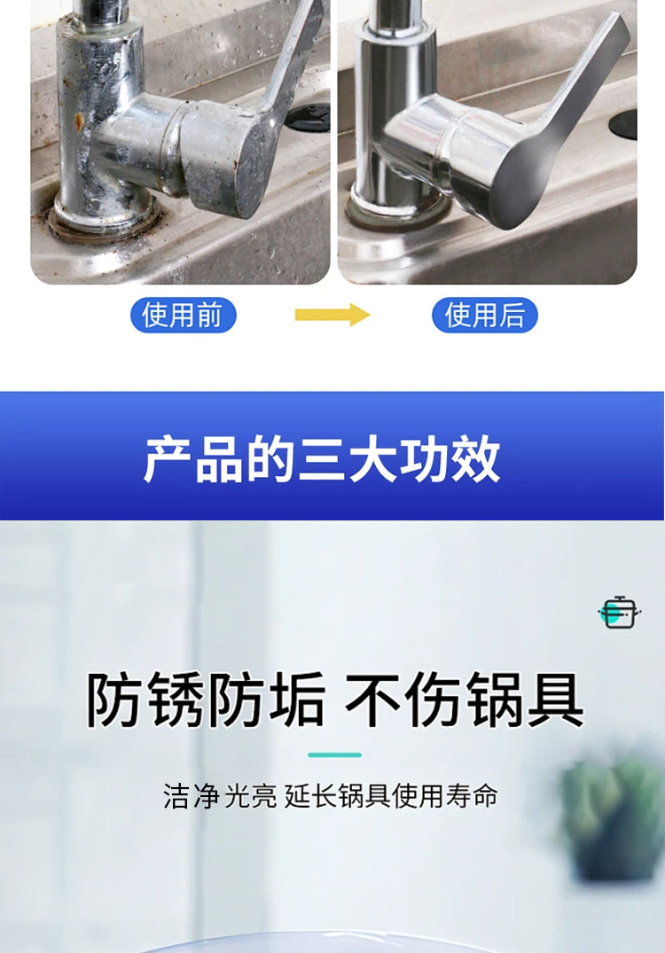 антибактериальный; Глубокая дезинфекция; Дезодорация и освежение; Удалить масштаб; Долговечная защита; Разрушить масляные пятна; Безопасное обеззараживание
