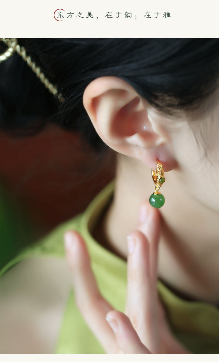 [Коллекция 1331 человека] Хотан Джейд позолоченные серьги-серьги с ушами и серьги-серьги в китайском стиле