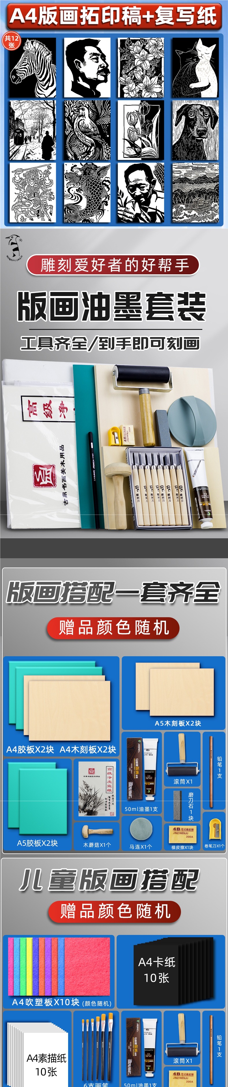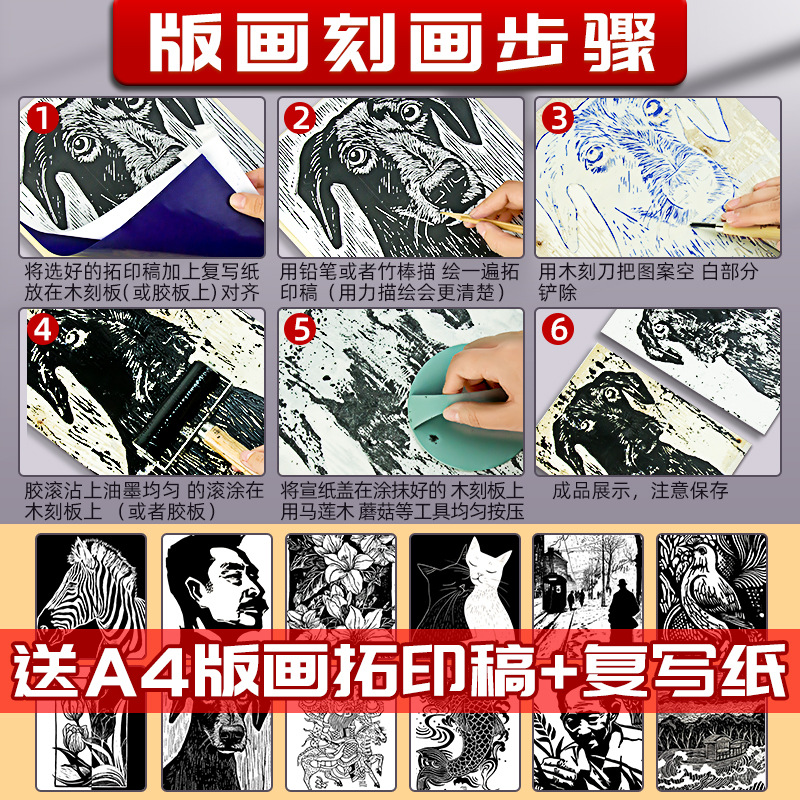 12 вариантов версии A4 классических рукописей для натирания и печати + копировальная бумага [4 ножа для резьбы + 2 пластины для резьбы по дереву] Модернизированный набор из 17 предметов [4 ножа для резьбы + 4 деревянных гравировки