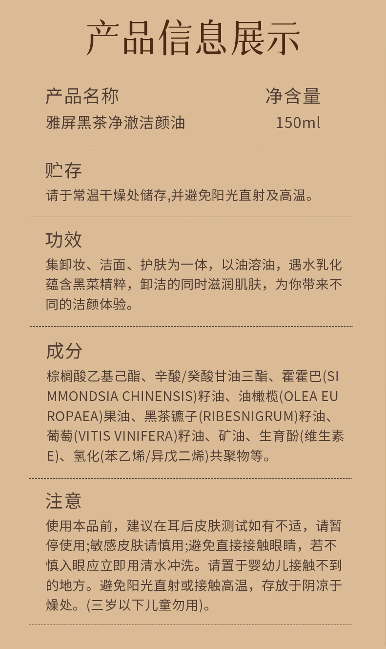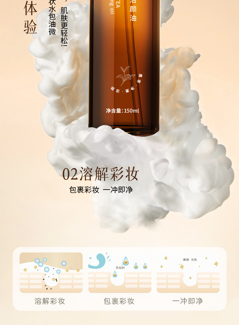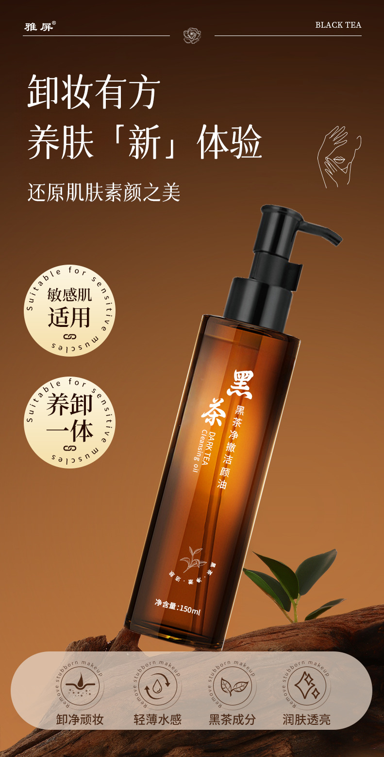 Yaping черный чай чистый увлажняющий очищающее масло для очищающего масла Глубокая очистка нежных и чувствительных мышц Студенческое очищающее масло