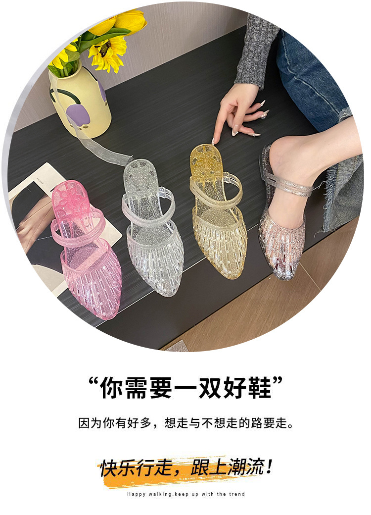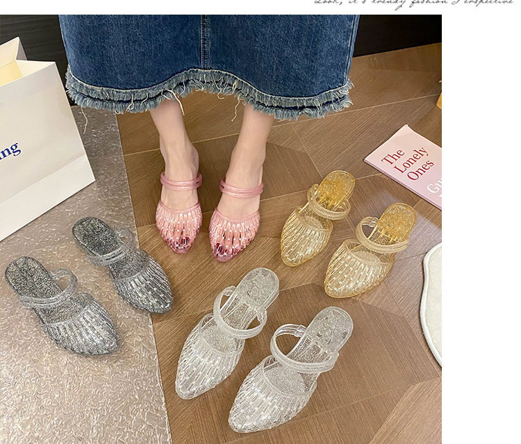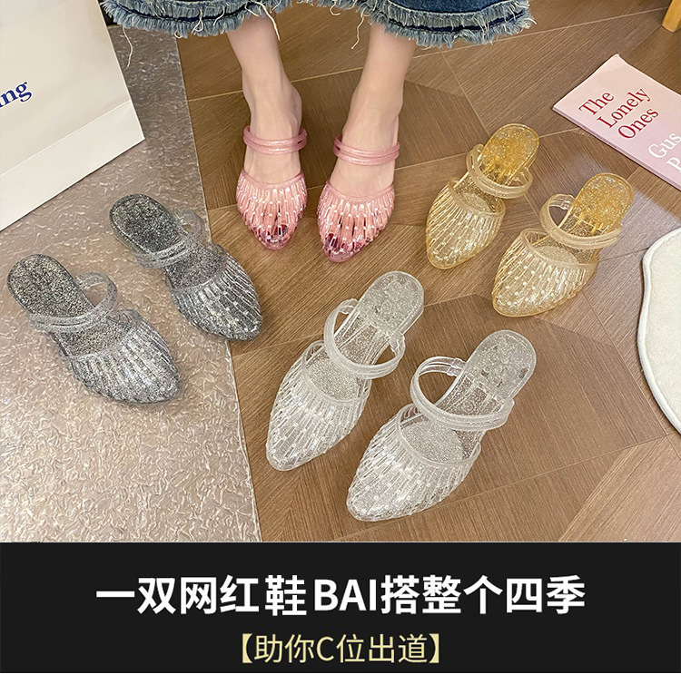 Летние новые холодные тапочки для женщин носить остроконечные средние и модные повседневные на работе