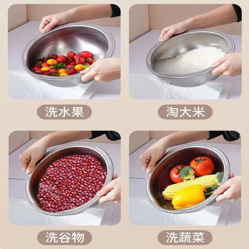 бассейн фильтра; Золотая баночка для приправ, набор из двух штук по 24 см.; Серебряная баночка для приправ, набор из двух штук; Большой овальный бассейн; Набор для мытья риса из трех предметов; Набор мисок для торта из 3 шт.; Регулируемая раковина 36 см.