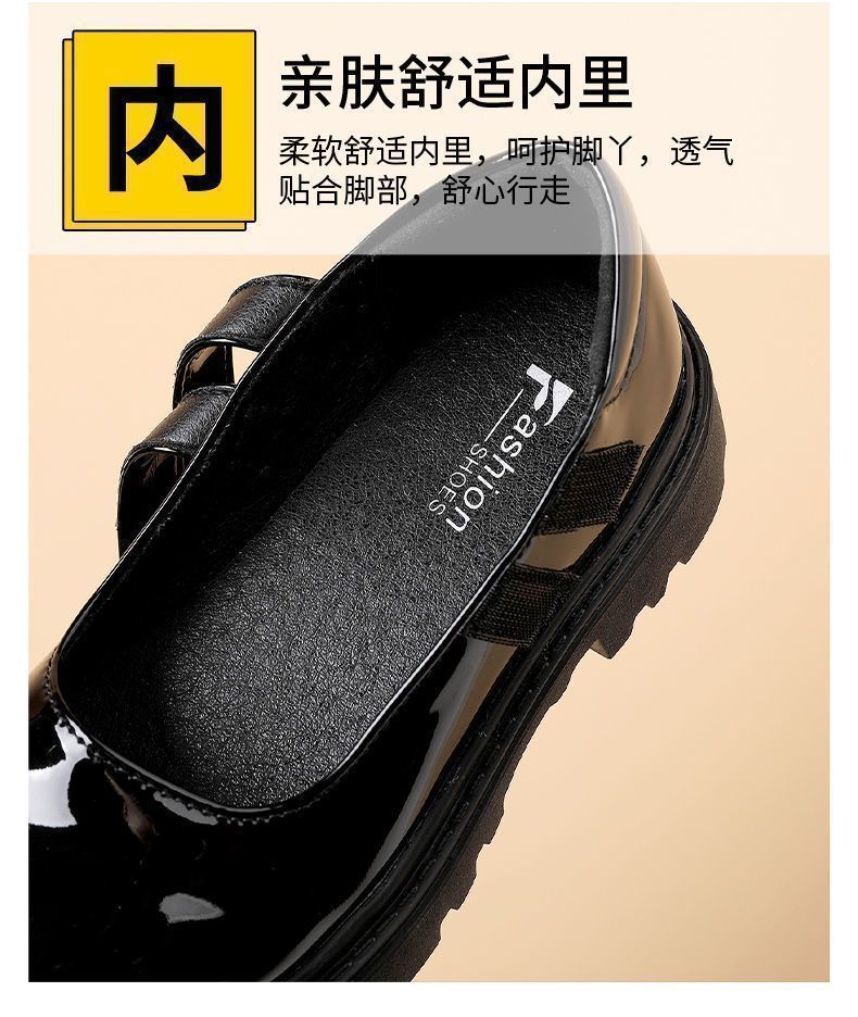 Детские черные кожаные туфли для выступлений, блестящие туфли на липучке для девочек среднего и старшего возраста, оптовая продажа детской обуви для внешней торговли, в стиле принцессы
