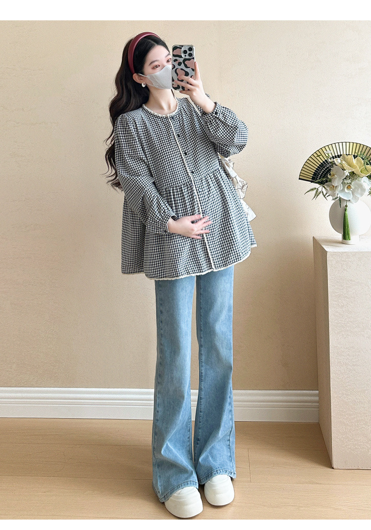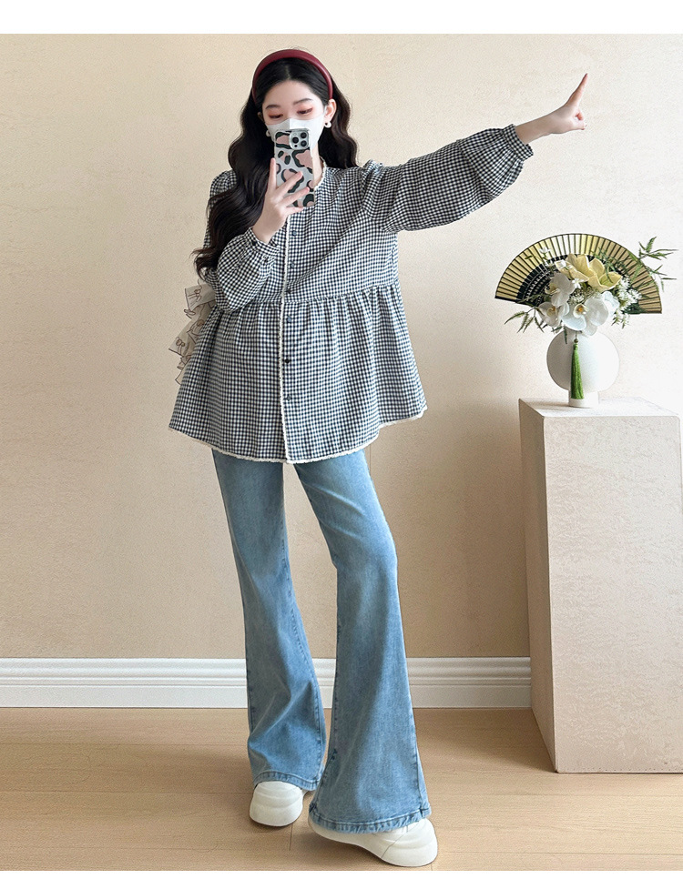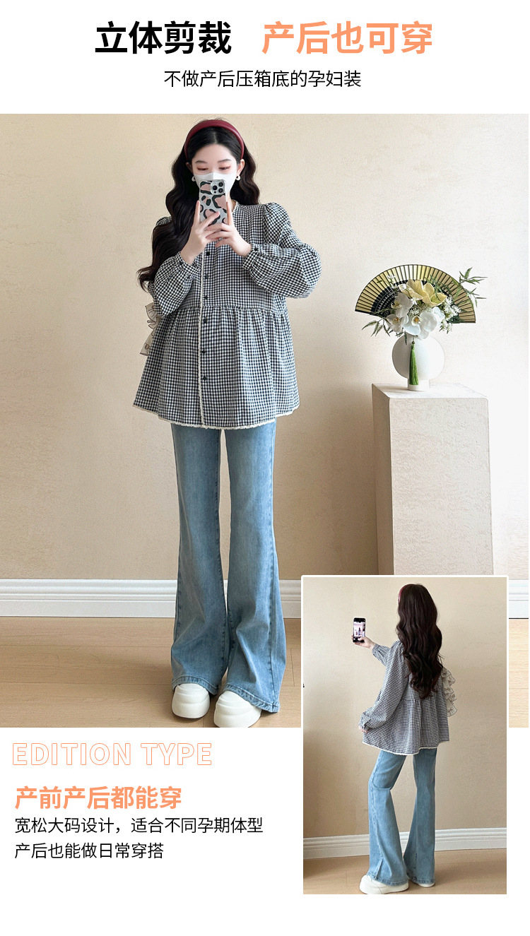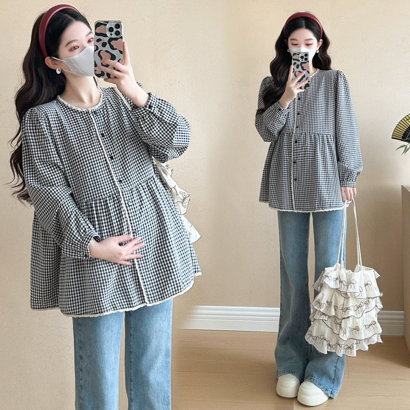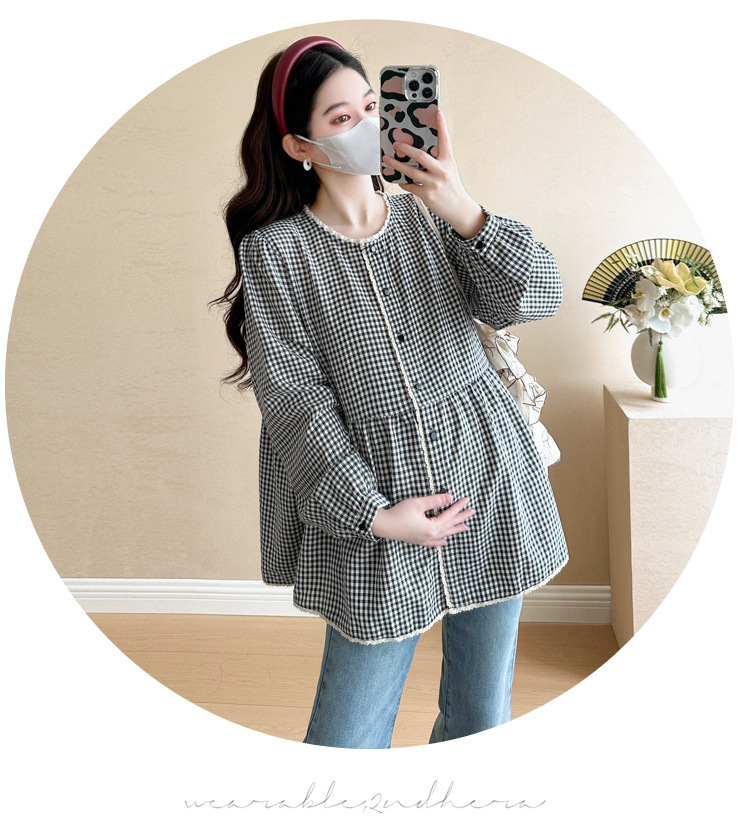 Одежда для беременных Весенняя мода с длинными рукавами клетчатая рубашка свободный большой размер повседневная тощая рубашка весенняя рубашка