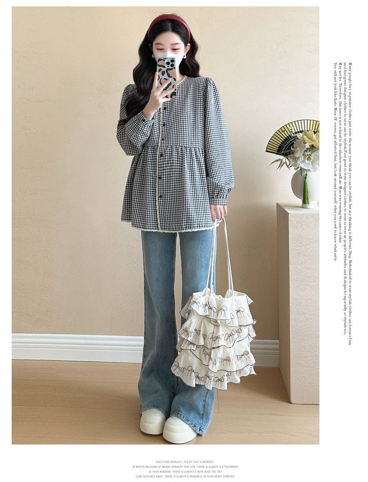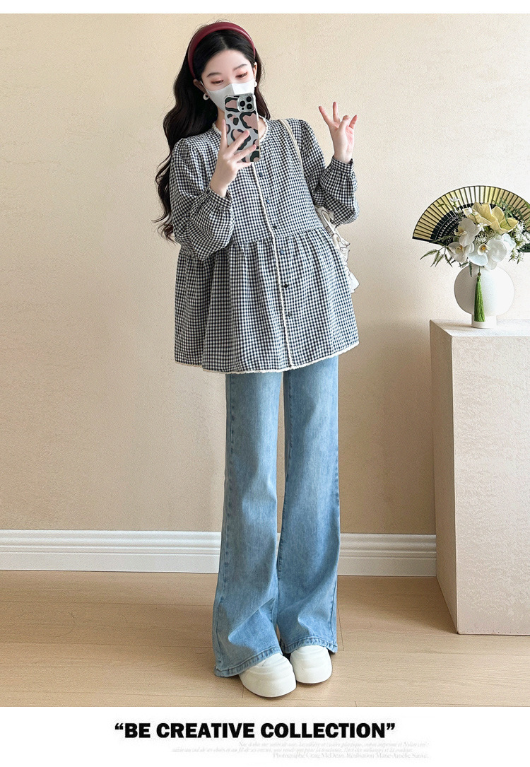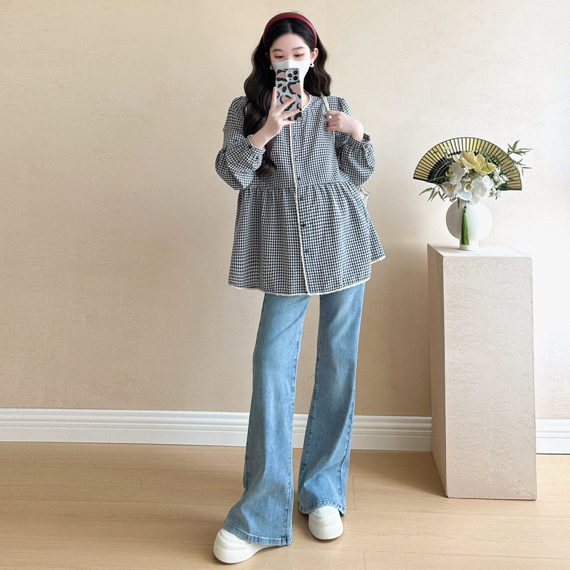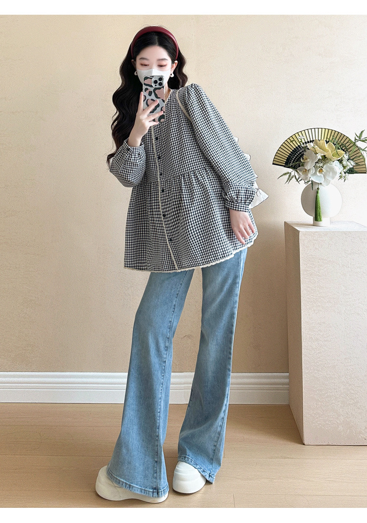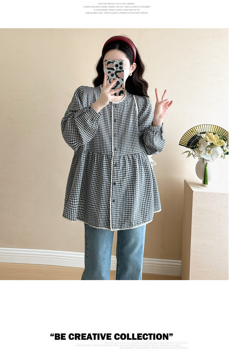 Одежда для беременных Весенняя мода с длинными рукавами клетчатая рубашка свободный большой размер повседневная тощая рубашка весенняя рубашка