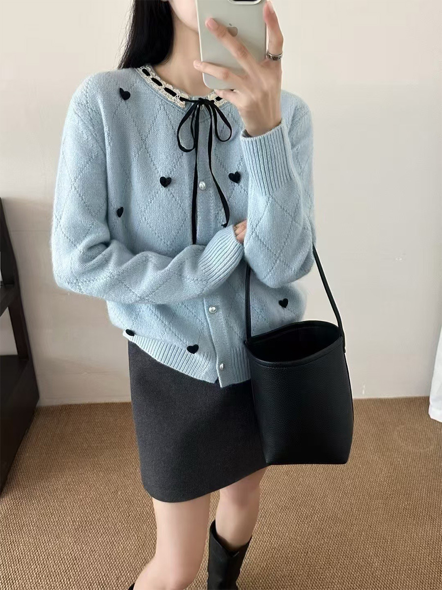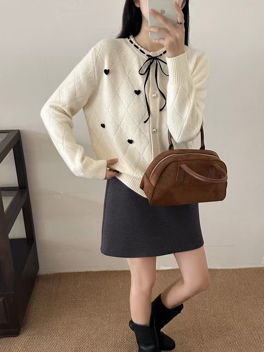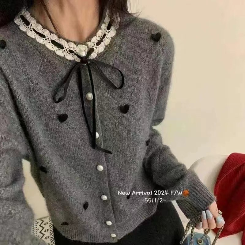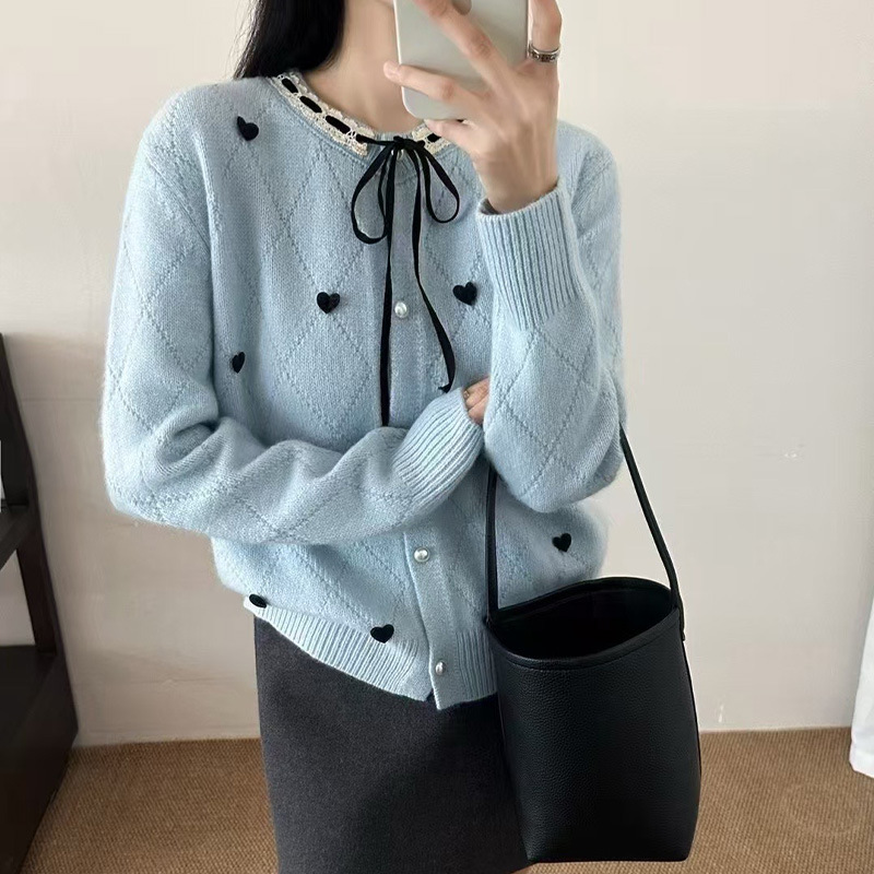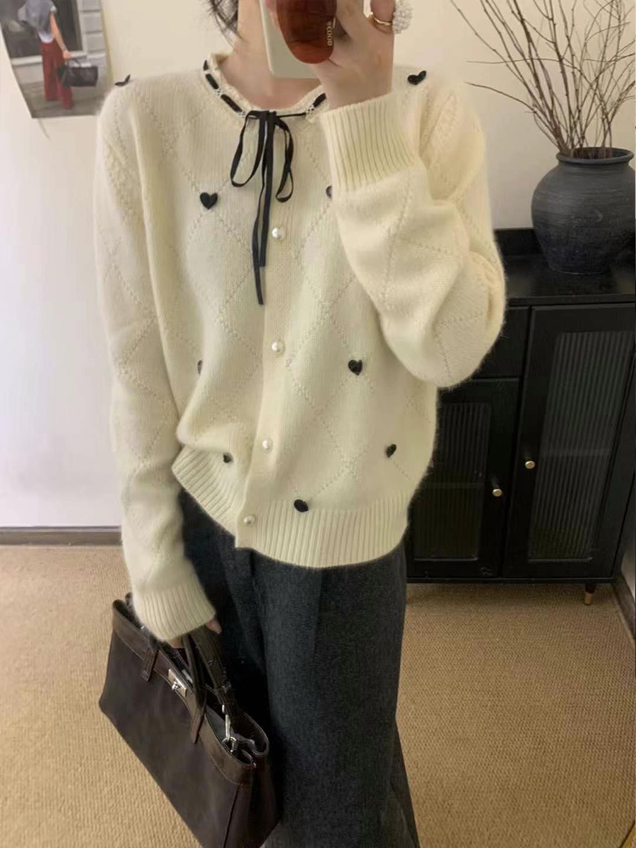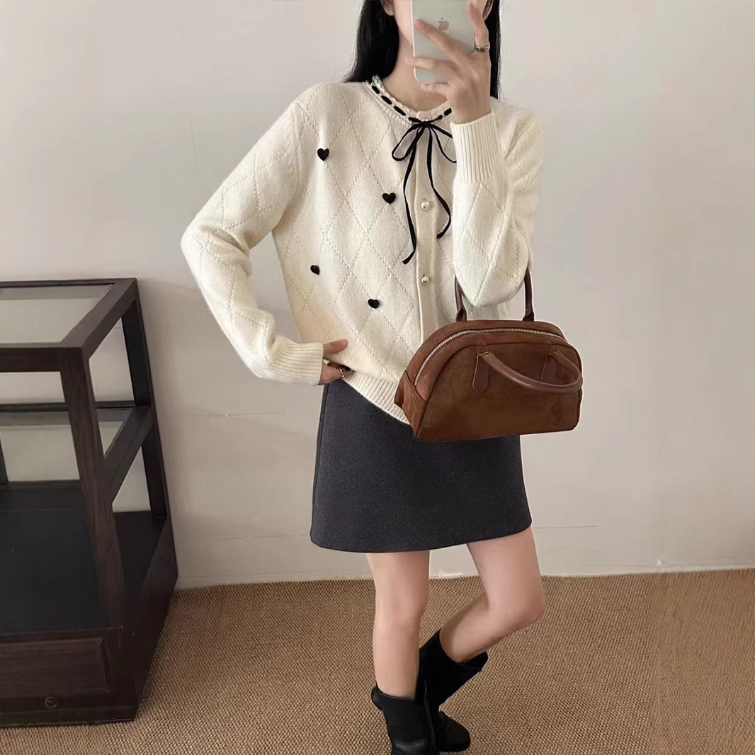 Xiao Xiangfeng трикотажный кардиган женский сладкий любовный весенний и осенний трикотажный топ 2025 новый свитер с бантом