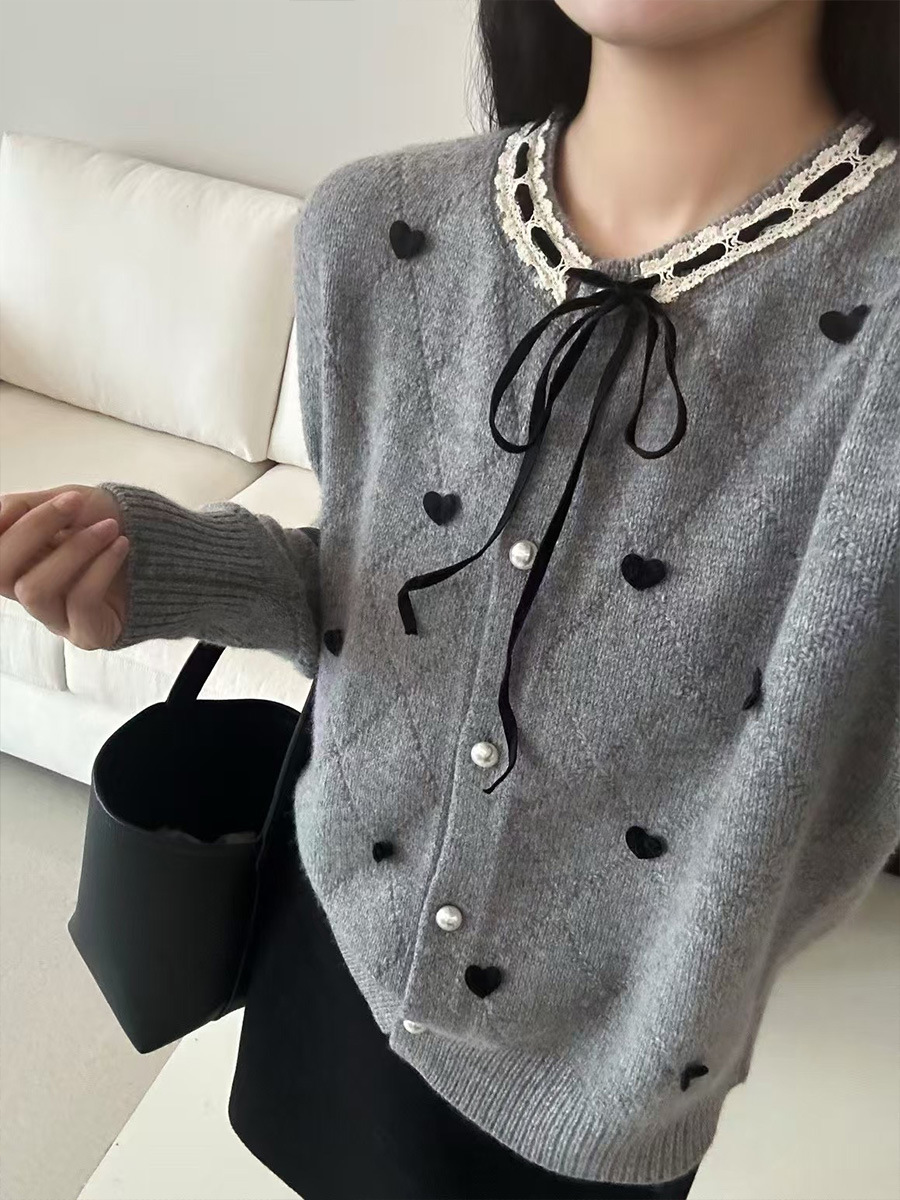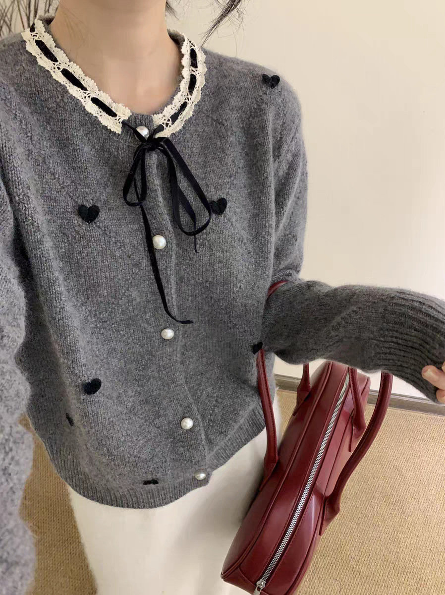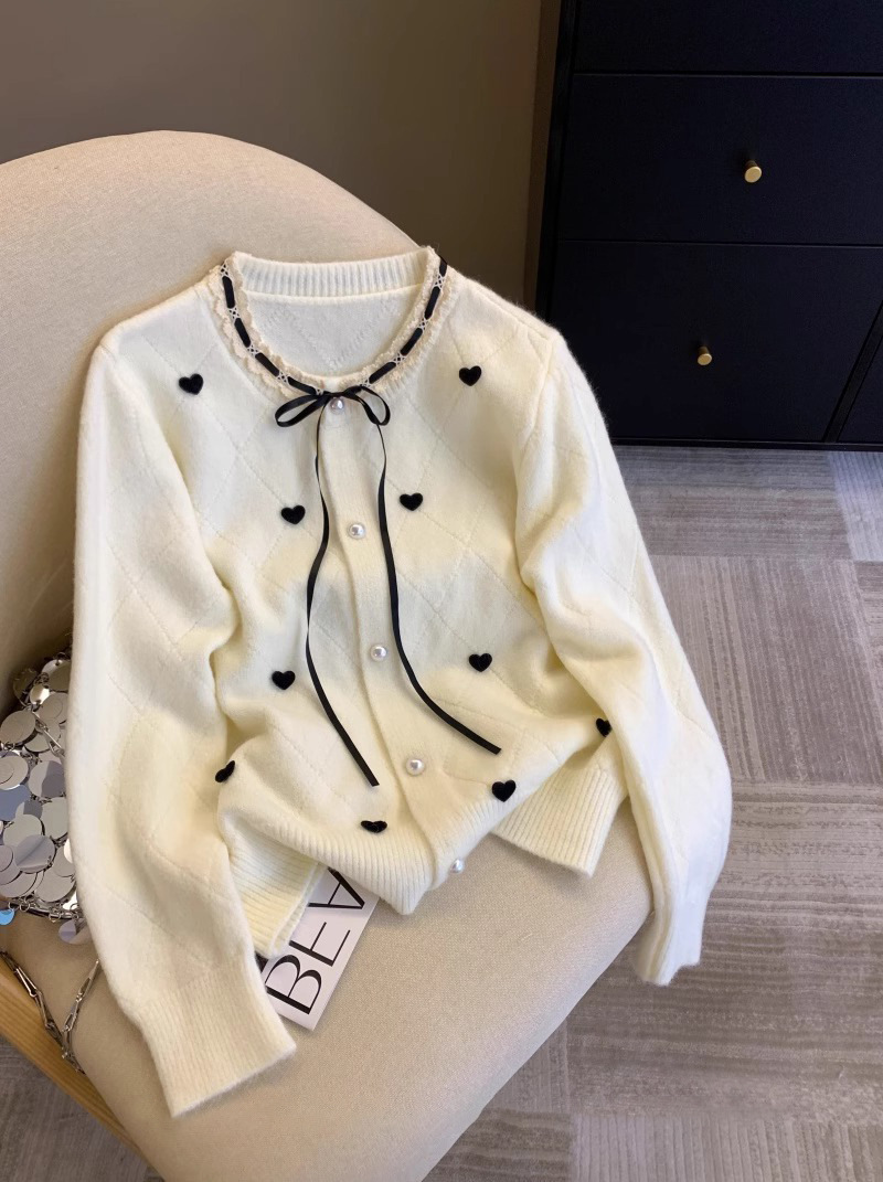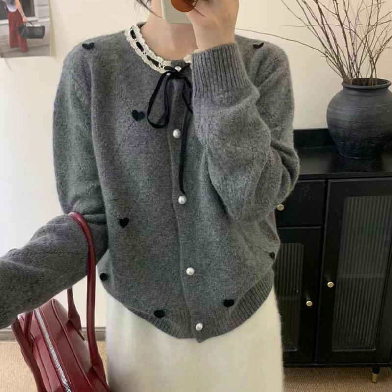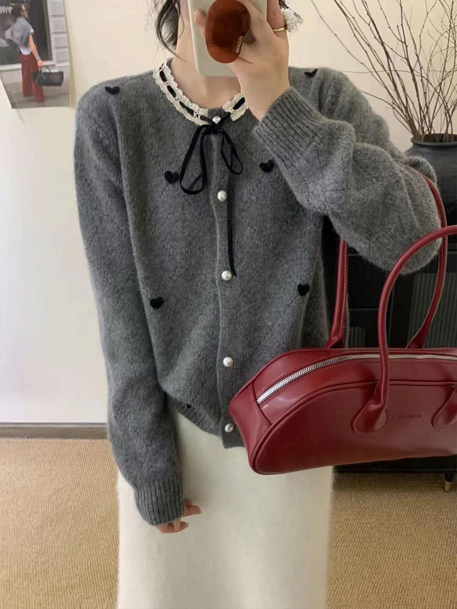 Xiao Xiangfeng трикотажный кардиган женский сладкий любовный весенний и осенний трикотажный топ 2025 новый свитер с бантом