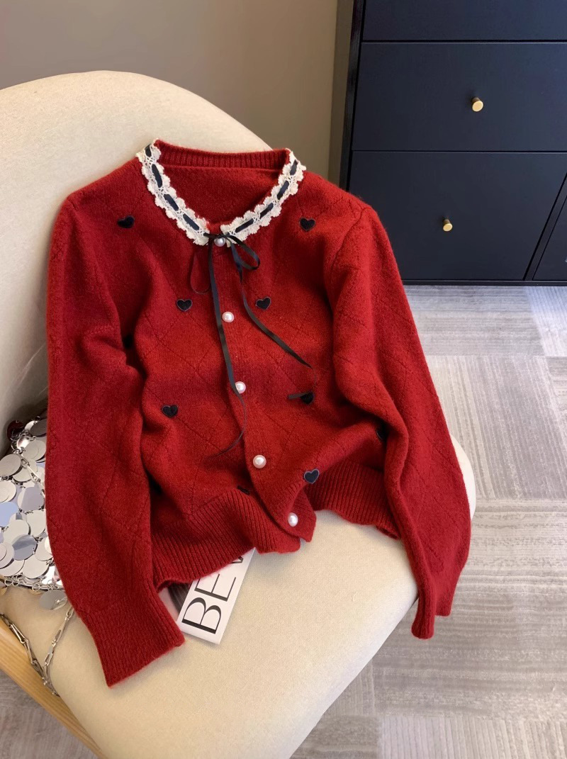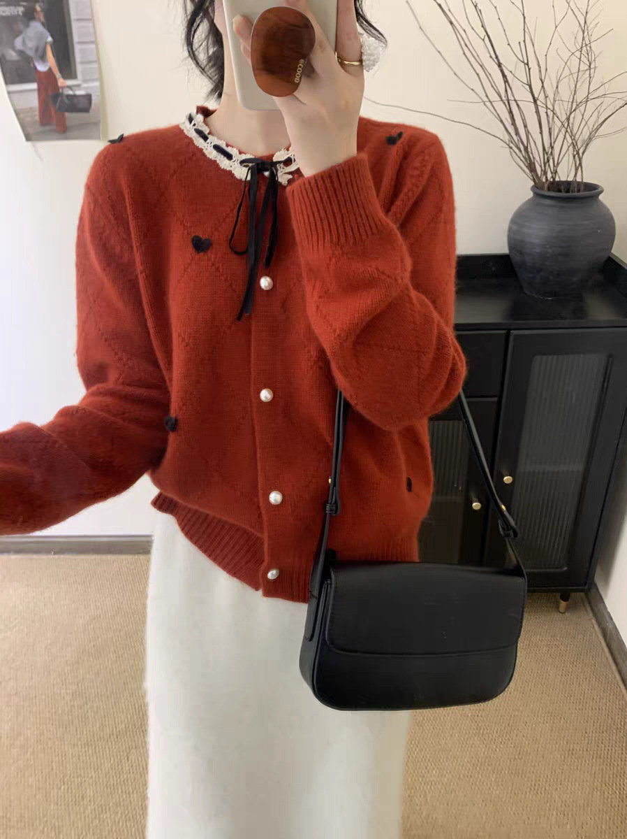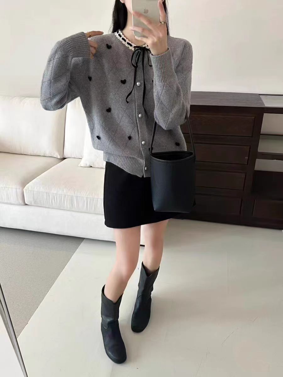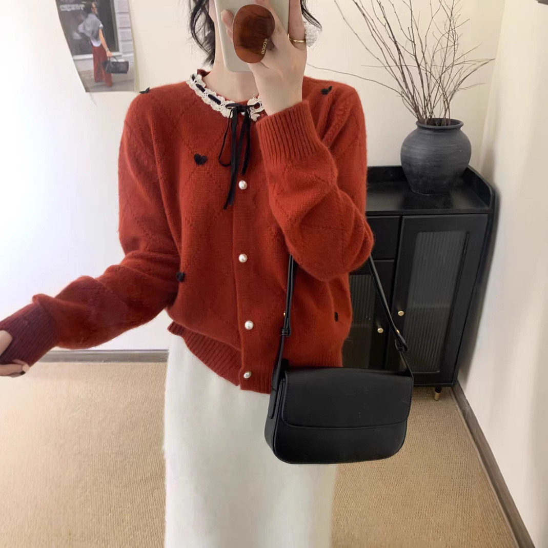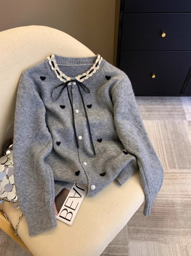 Xiao Xiangfeng трикотажный кардиган женский сладкий любовный весенний и осенний трикотажный топ 2025 новый свитер с бантом