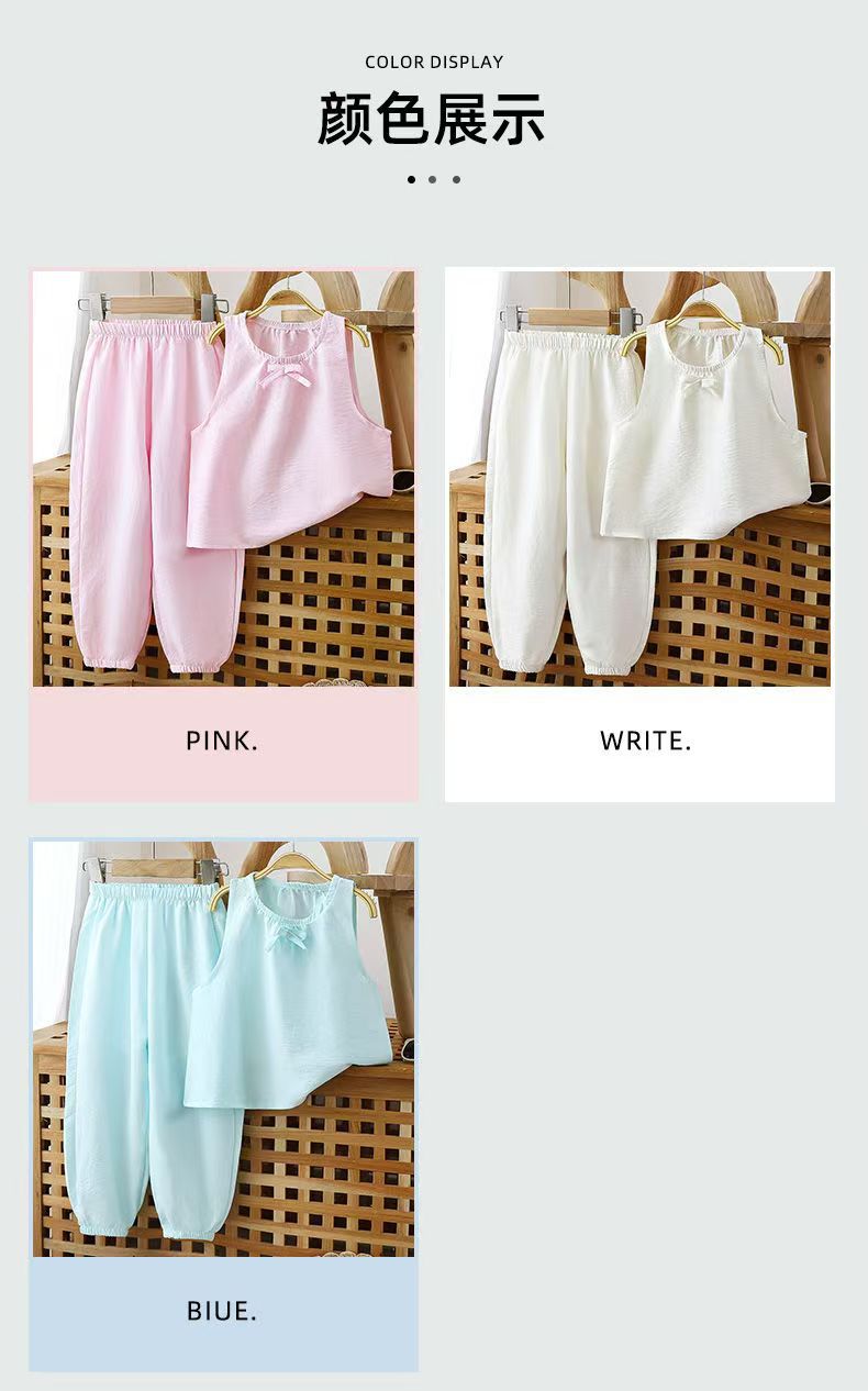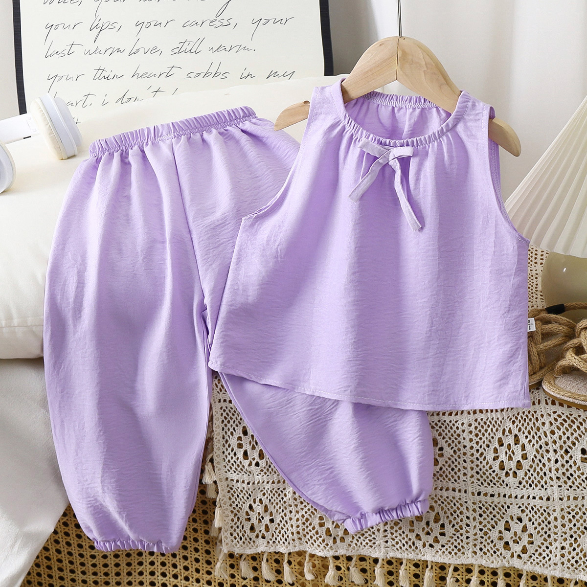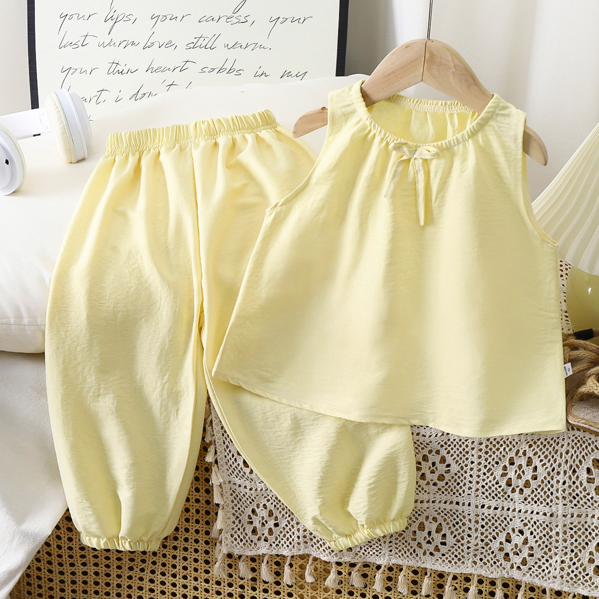Брючный костюм без рукавов для девочек [Розовый]; Брючный костюм без рукавов для девочек [бежевый]; Брючный костюм без рукавов для девочек [синий]; Брючный костюм без рукавов для девочек [желтый]; Брючный костюм без рукавов для девочек [фиолетовый]; Брючный костюм без рукавов для девочек [зеленый]