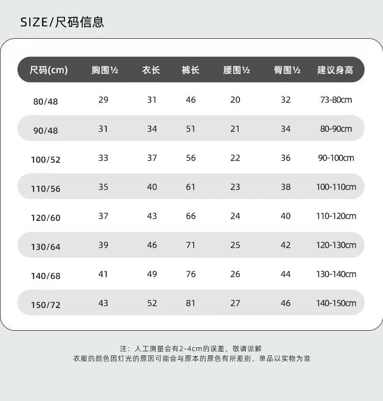 80cm; 90cm; 100cm; 110cm; 120cm; 130cm; 140cm; 150cm