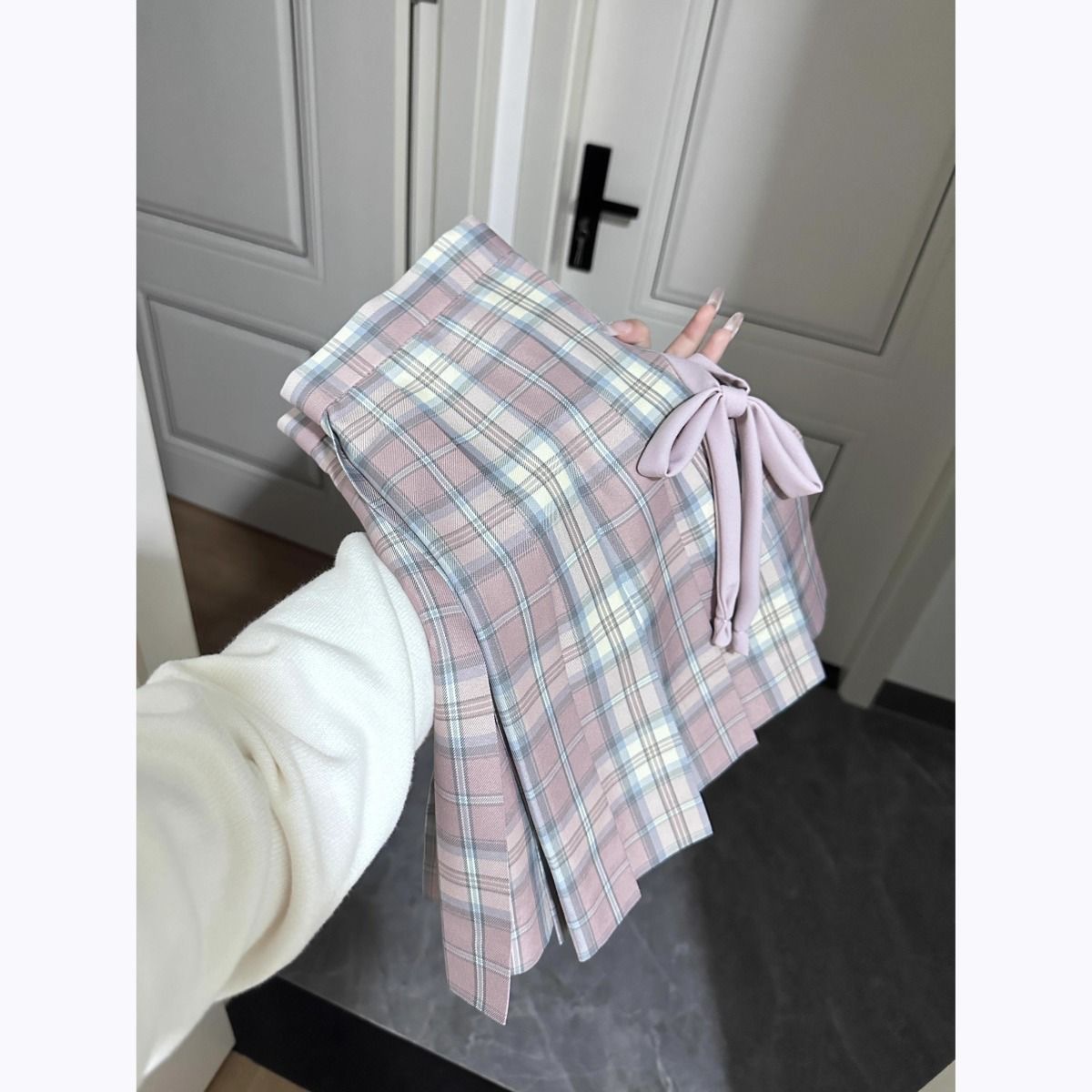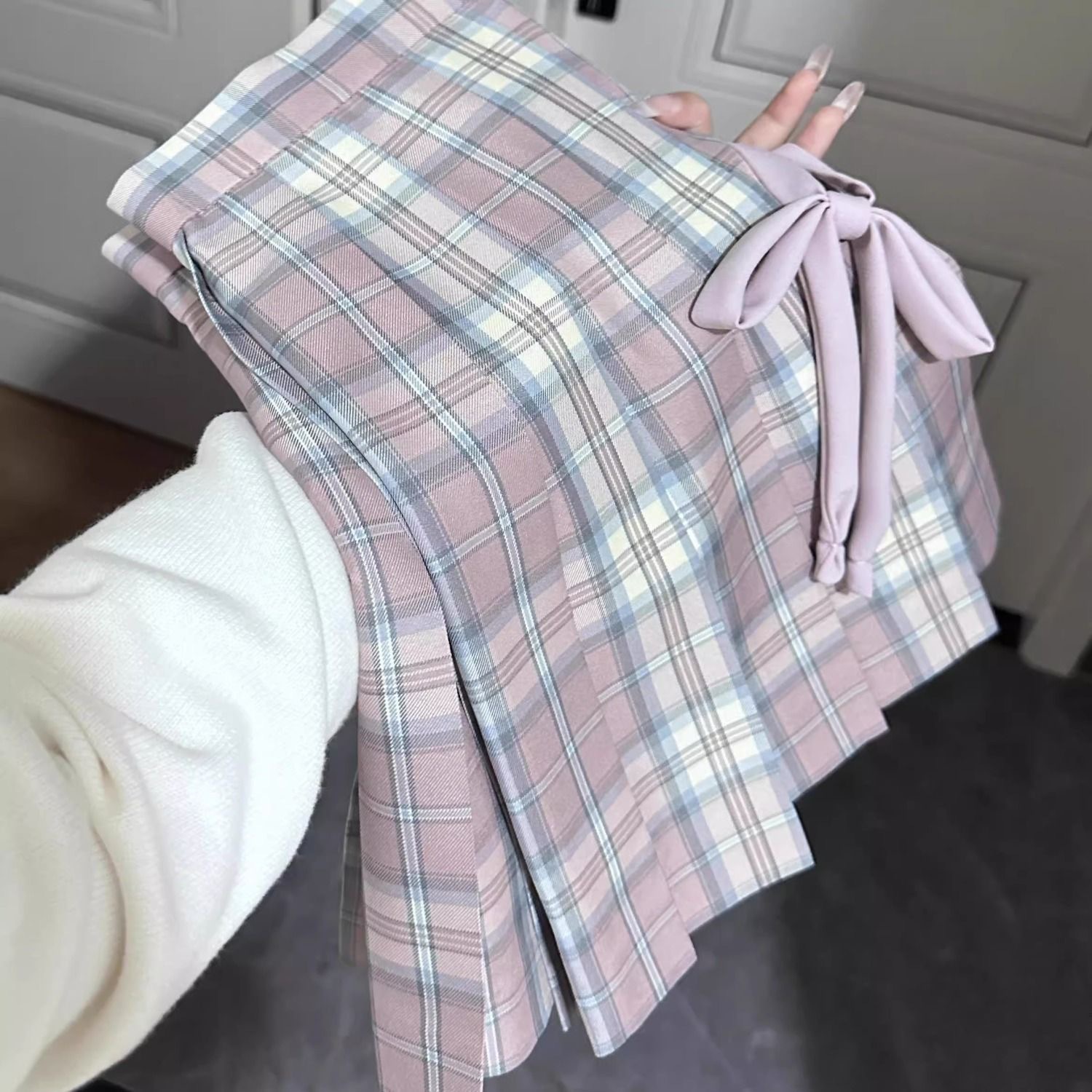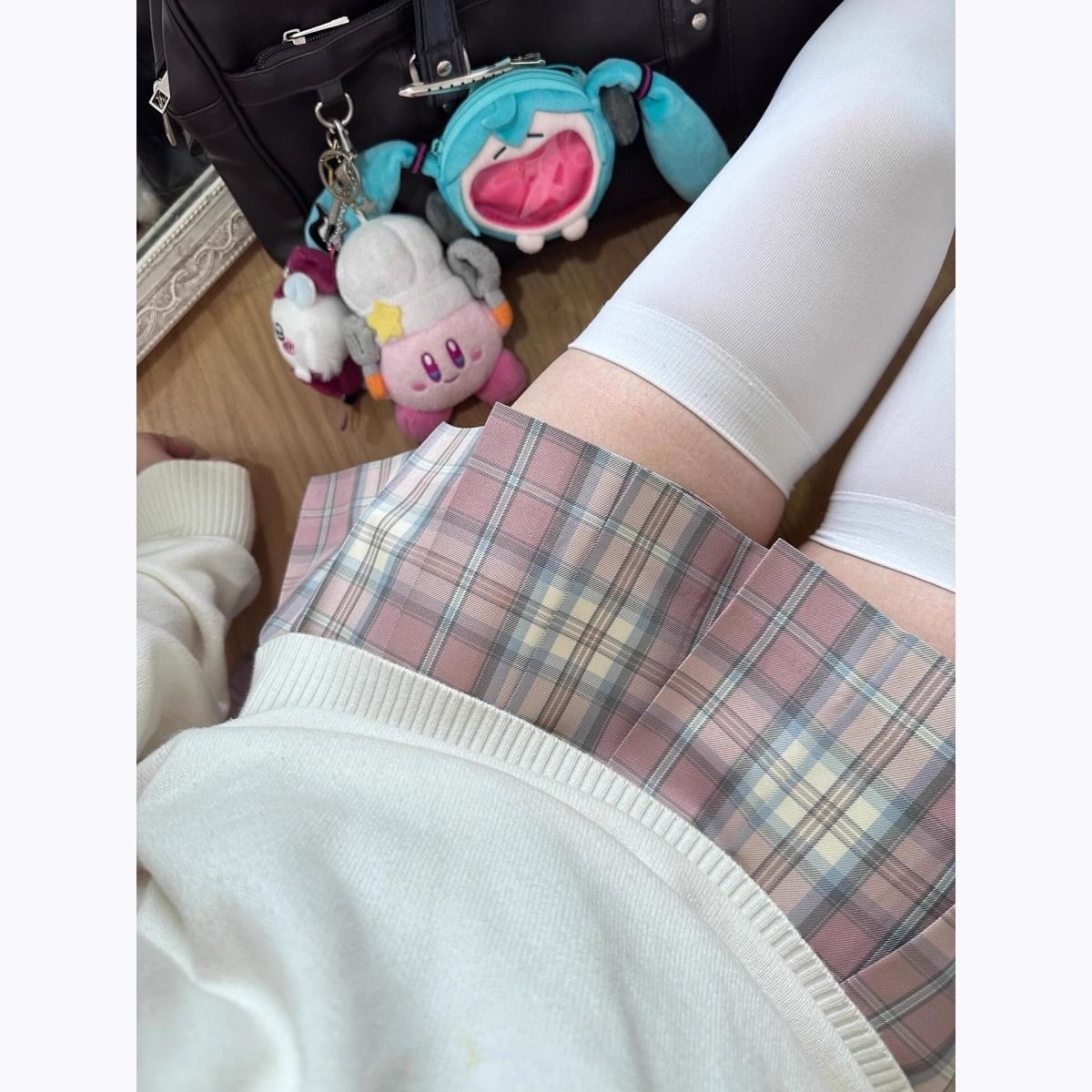 Сакурана Харудзи/клетчатая юбка 39 см + галстук-бабочка в том же стиле + коробка-самолет; Сакурана Харудзи/клетчатая юбка 39 см + галстук-бабочка в том же стиле; Цельная клетчатая юбка Sakura Nae Spring Time/39 см.