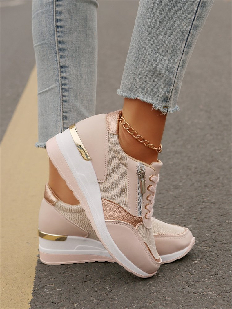 Весна, лето, осень и зимний сезон новый внешний вид большой размер дамы с наклоном и европейская и американская передняя шнуровка на молнии для отдыха Спортивные туфли
