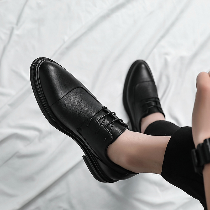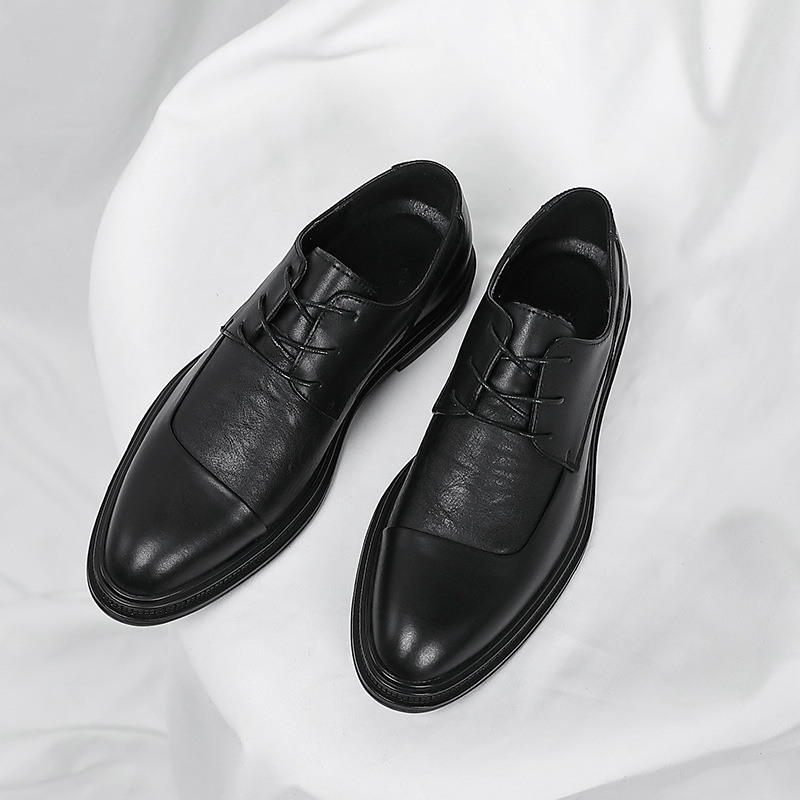 Кожаные туфли Мужские летние кожаные бизнес-платья Английский стиль дышащий продвинутый черный повседневный мягкий фон свадебные туфли жениха
