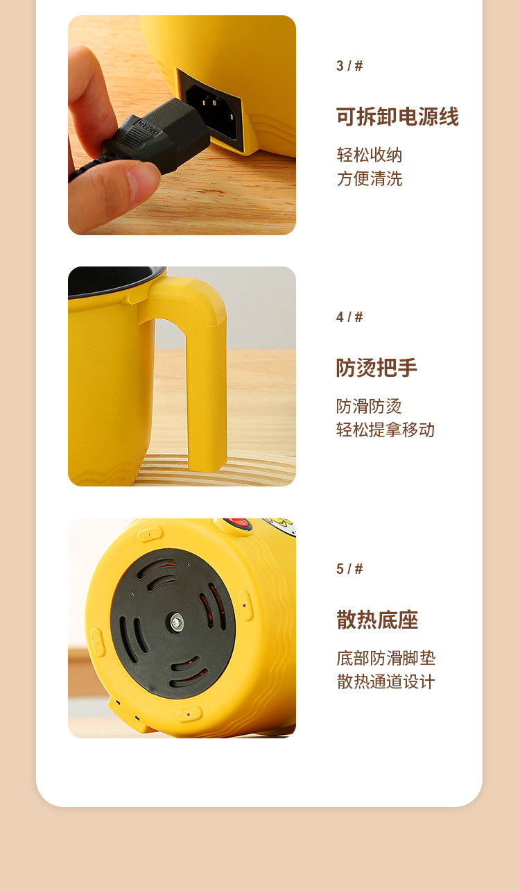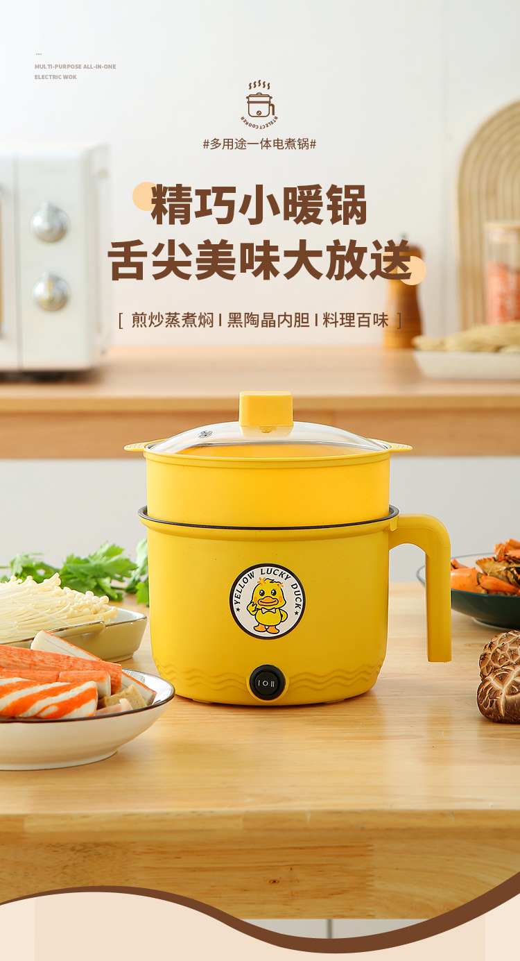 Электрическая плита Общежитие Студенческая лапша кастрюля универсальная многофункциональная бытовая маленькая желтая утка мини-горшок небольшой огненный пароход