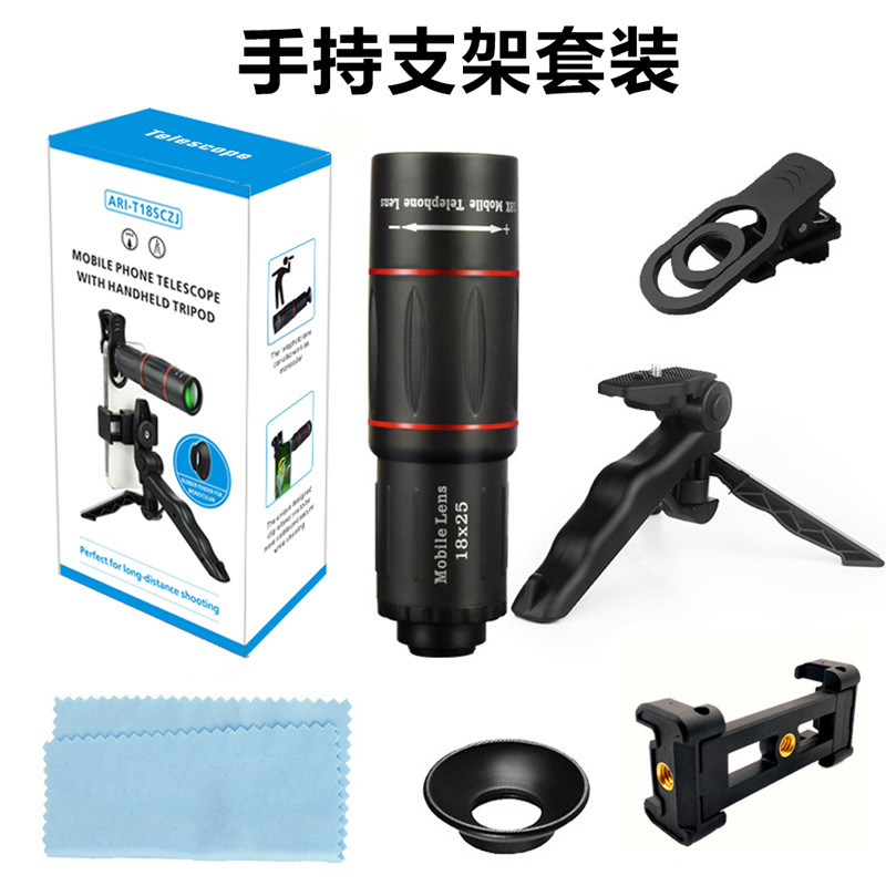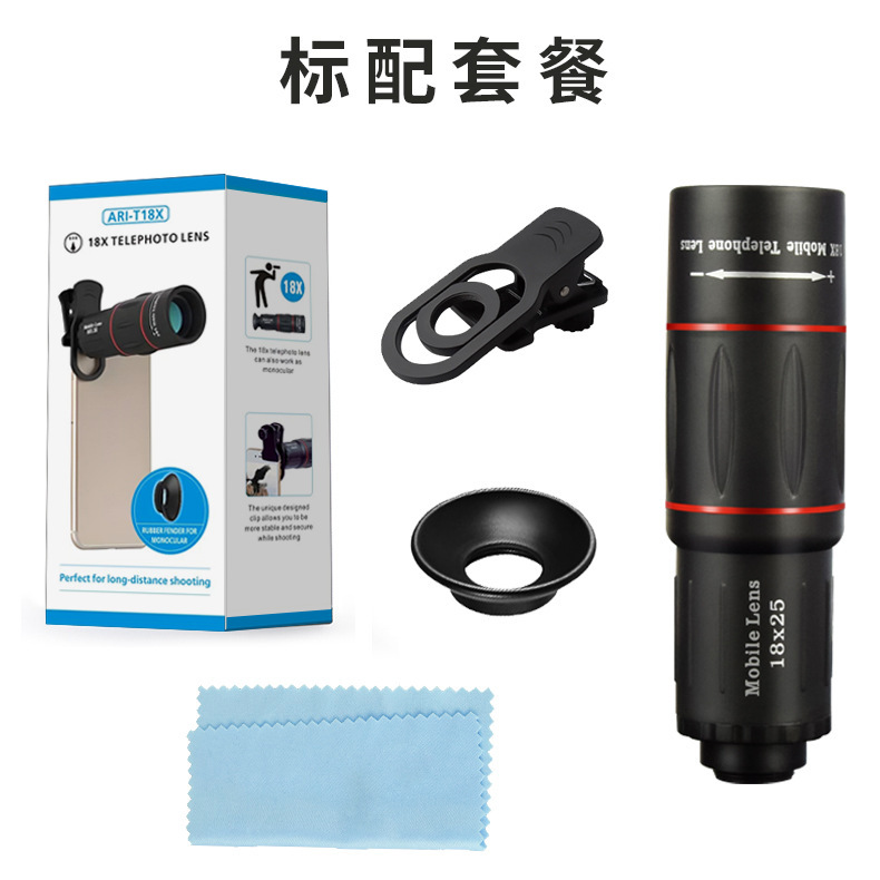 Стандартная конфигурация 18X25 (объектив + зажим для кошки (металлическая резьба) + маска для глаз + ткань для линз + тканевый мешок + инструкция по эксплуатации + цветная коробка); 18X25 (набор кронштейнов из алюминиевого сплава: стандартный + U-образный зажим + штатив); 18X25 (Набор для ручного использования: стандартный + складной зажим + ручной штатив); Телеобъектив 18X25 поставляется в стандартной комплектации с объективом для мобильного телефона «три в одном» (198 ° Рыбий глаз +120 ° Широкоугольный объектив +25-кратный макрос); Стандартная конфигурация 28X (объектив + зажим для кошек (металлическая резьба) + маска для глаз + ткань для линз + тканевый мешок + инструкция по эксплуатации + цветная коробка); 28X-(Набор кронштейнов из алюминиевого сплава: стандартный + U-образный зажим + штатив); 28X-(Набор ручных подставок: стандартная + складной зажим + ручной штатив); Телеобъектив 28X входит в стандартную комплектацию + объектив для мобильного телефона «три в одном» (198°Рыбий глаз +120°Широкоугольный объектив +25-кратный макрос); Стандартная конфигурация 36X (объектив + зажим для кошки (металлическая нить) + маска для глаз + ткань для линз + тканевый мешок + инструкция по эксплуатации + цветная коробка); 36X-(Набор кронштейнов из алюминиевого сплава: стандартный + U-образный зажим + штатив); 36X-(Набор ручных подставок: стандартная + складной зажим + ручной штатив); Телеобъектив 36X входит в стандартную комплектацию + объектив для мобильного телефона «три в одном» (198°Рыбий глаз +120°Широкоугольный объектив +25-кратный макрос)