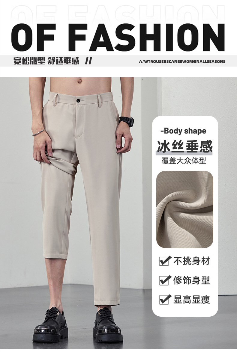 JYF-2570 брюки-брюки мужские весенние летние укороченные брюки прямые ледяные брюки мужские повседневные брюки мужские узкие брюки