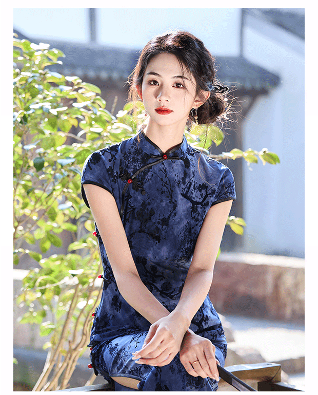 Красные глаза, новый китайский стиль Cheongsam 2025, новое платье с короткими рукавами из синели, улучшенный молодежный стиль, ретро-платье для мамы
