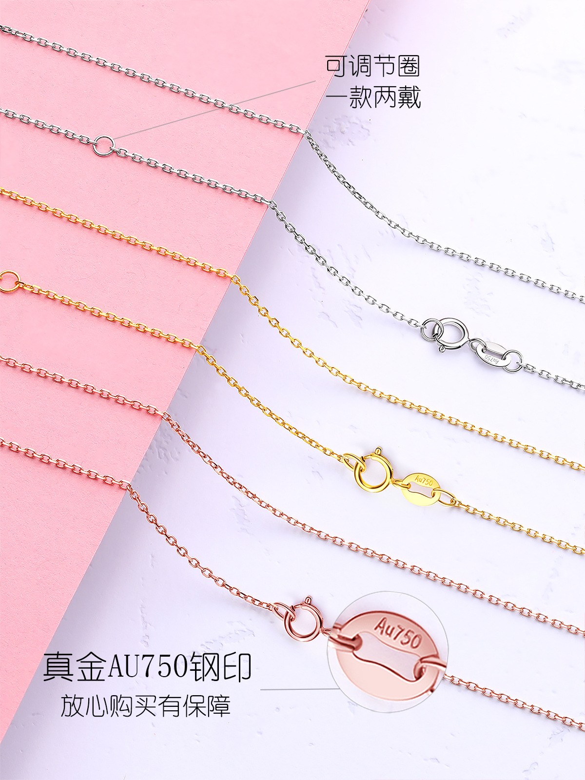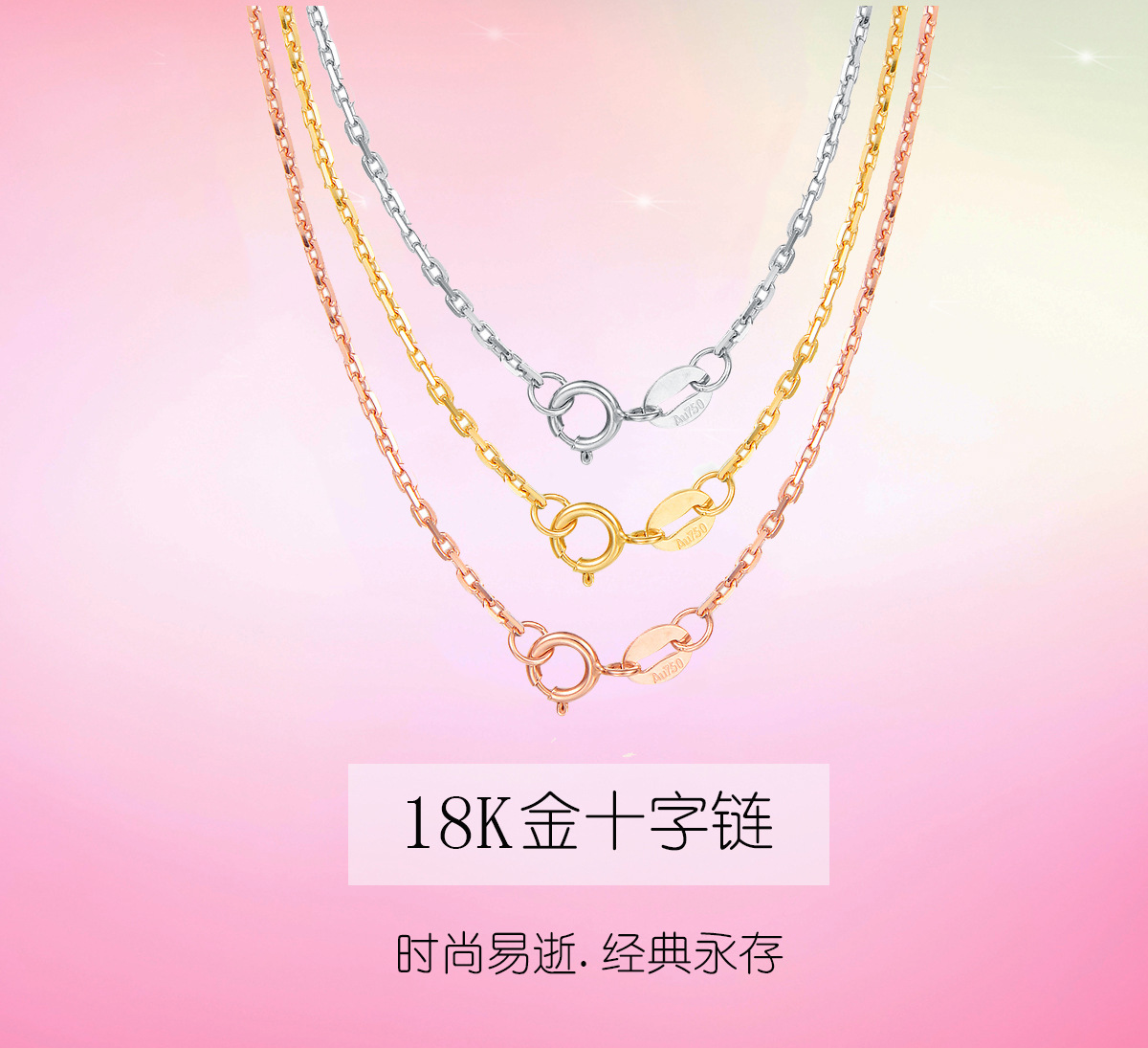 Золотая цепочка-крестик 18к, цвет золота AU750, розовое золото, женское колье, универсальная цепочка на ключицу, универсальная цепочка, золото под водой