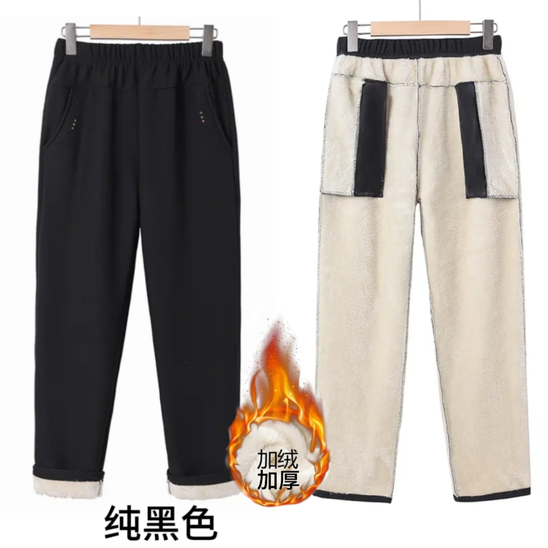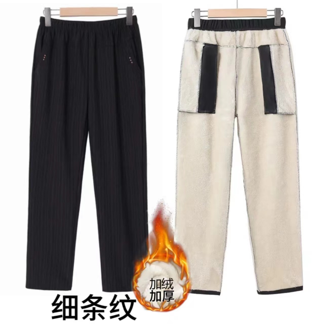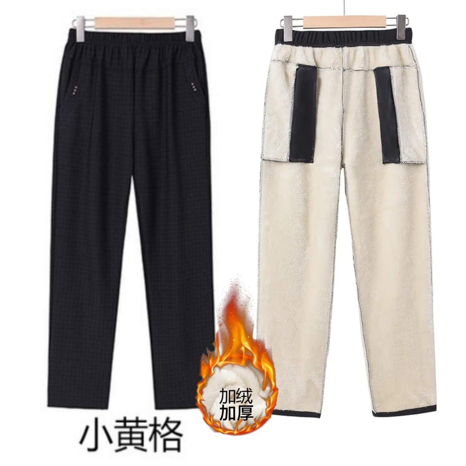 Средние и старые зимние брюки бабушки бархат утолщенные овечья шерсть плюс мама прямого размера хлопчатобумажные брюки брюки с высокой талией