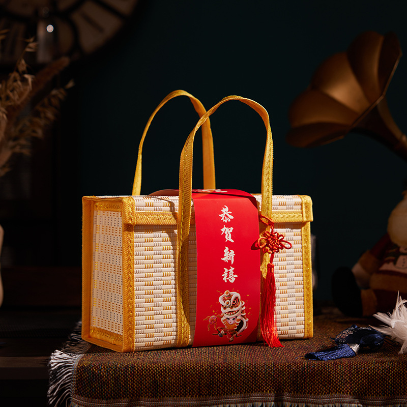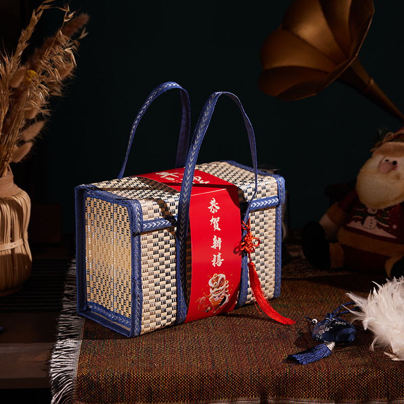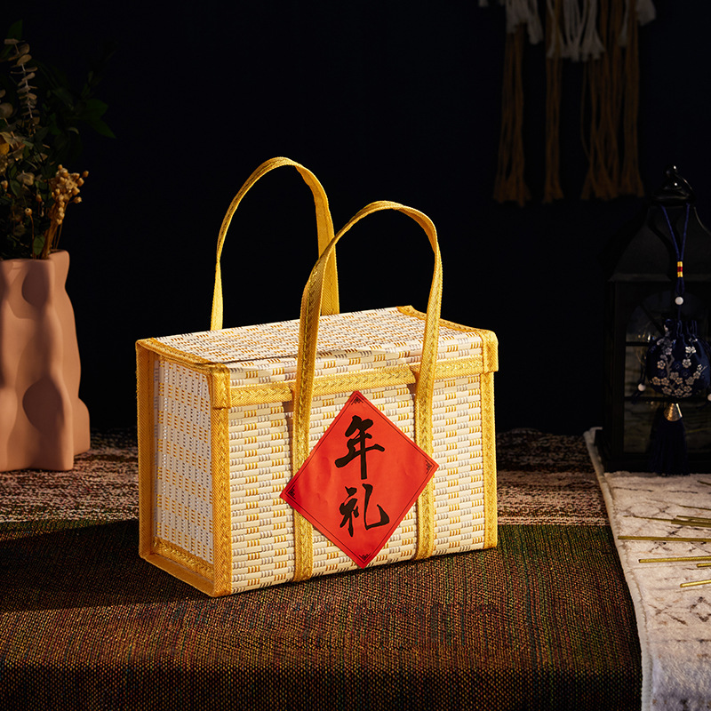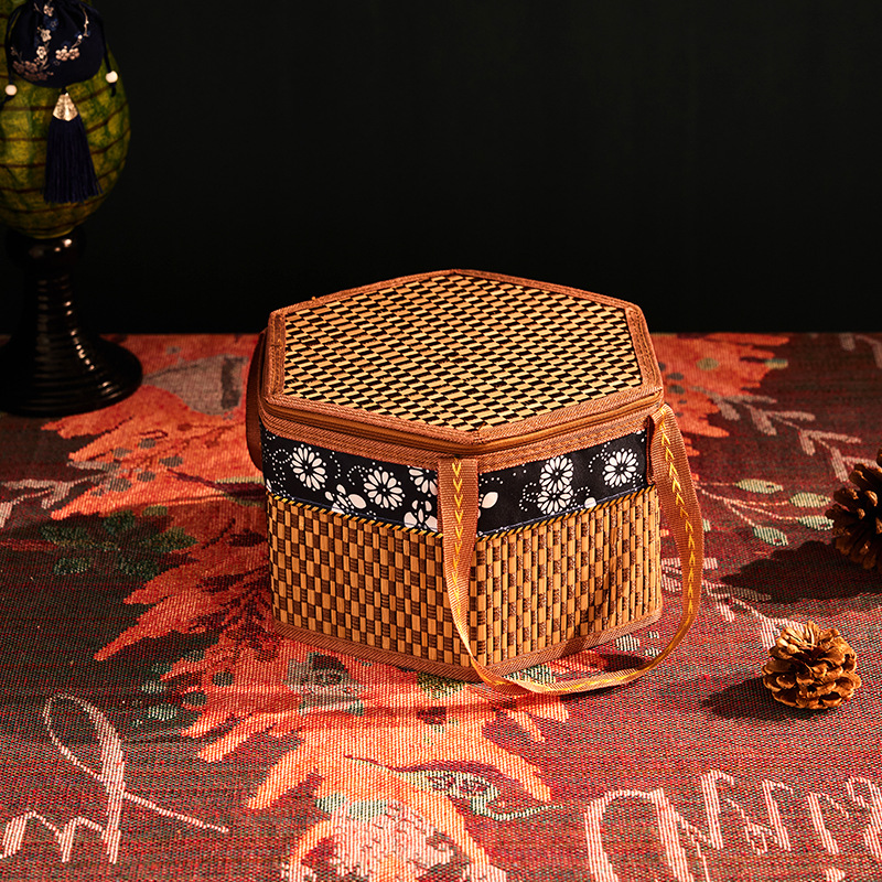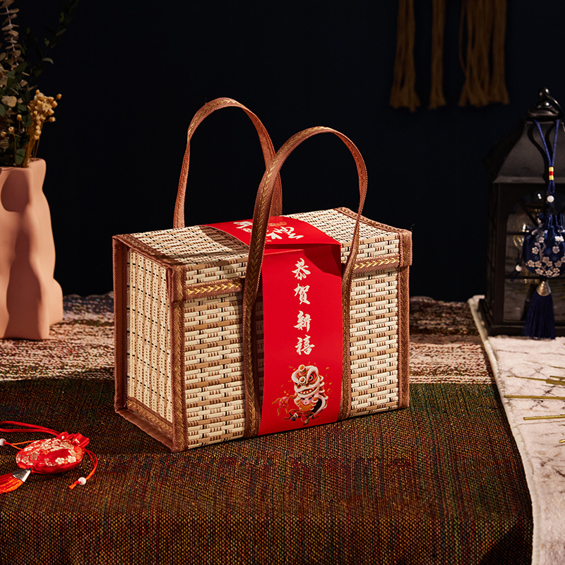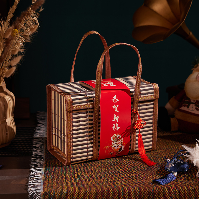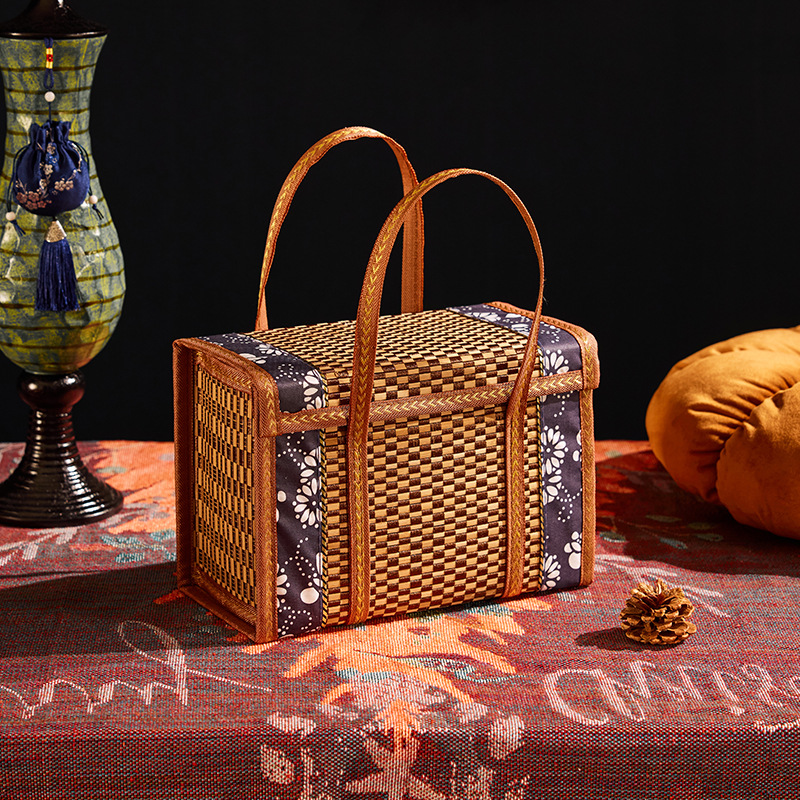 Бамбуковая корзина Ручная корзина Ручная корзина Фруктовый пирог Волосатый краб Подарочная коробка Складная высококачественная бамбуковая коробка