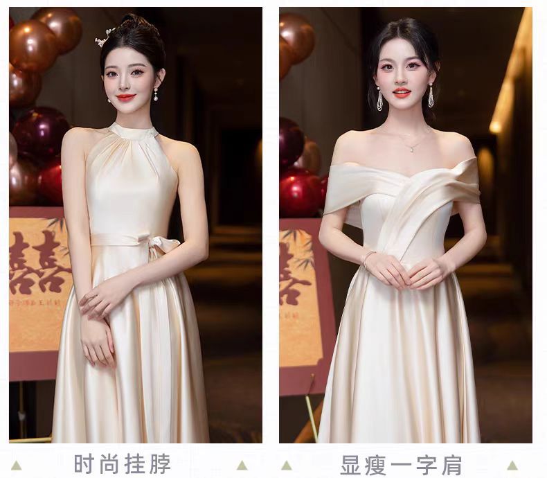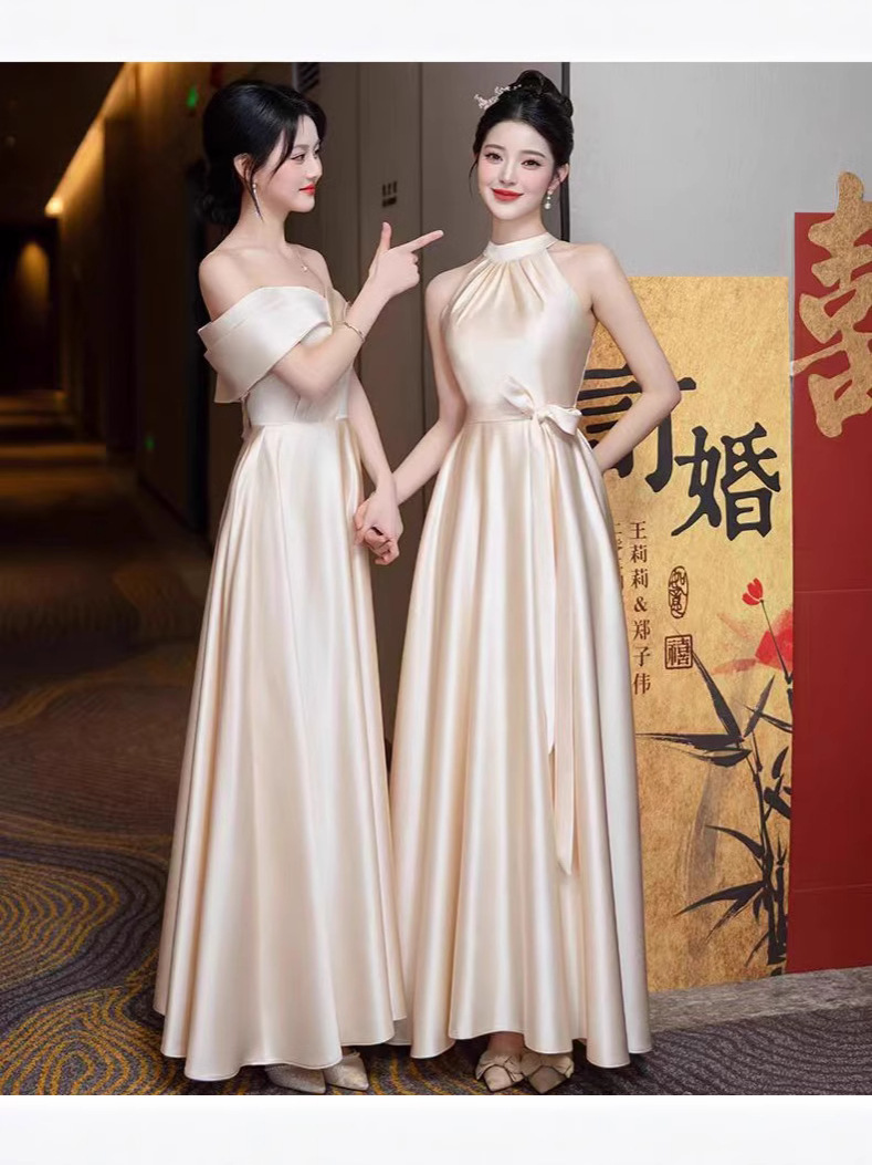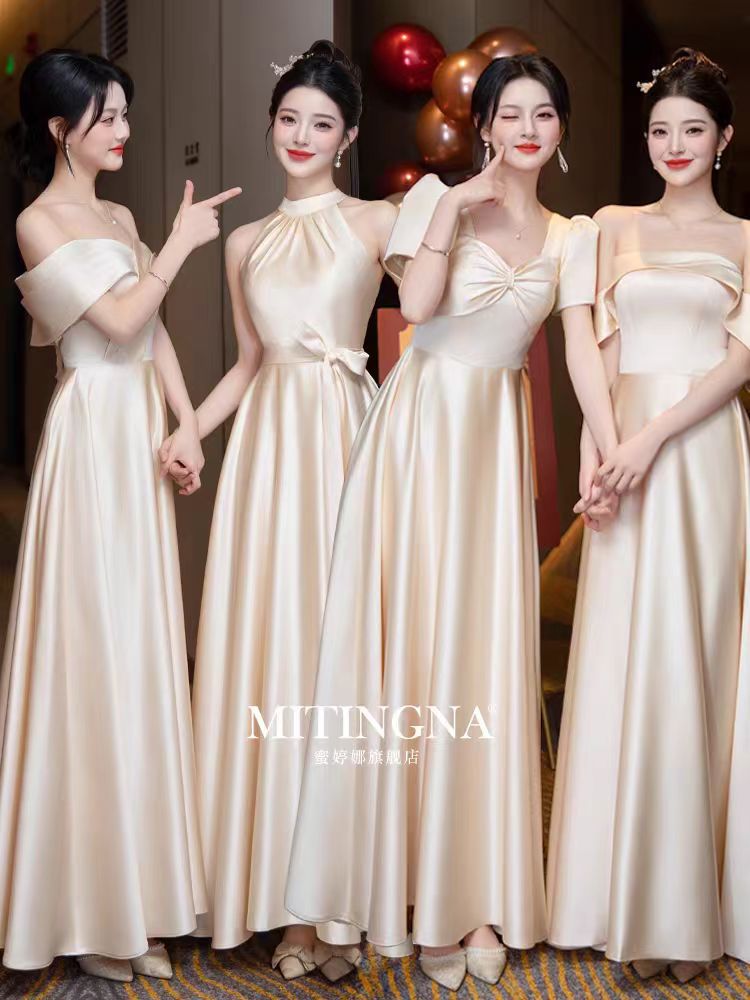 Атласный костюм для подружек невесты 2025 новый сестринский цвет шампанского высокого класса юбка для помолвки обычно можно носить летом