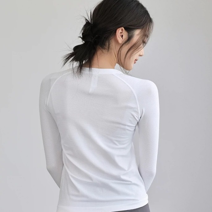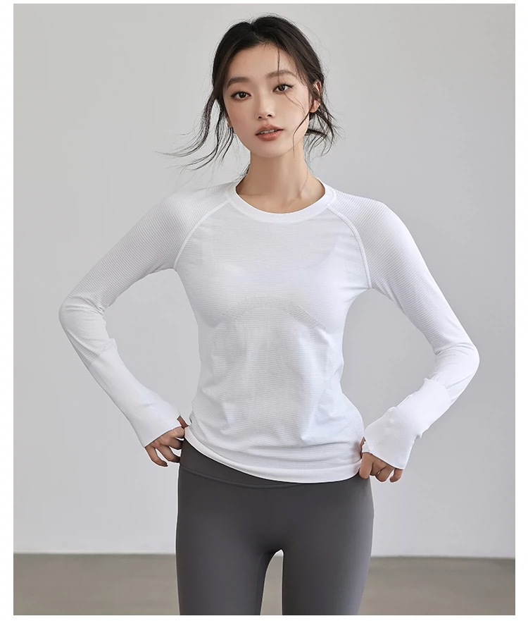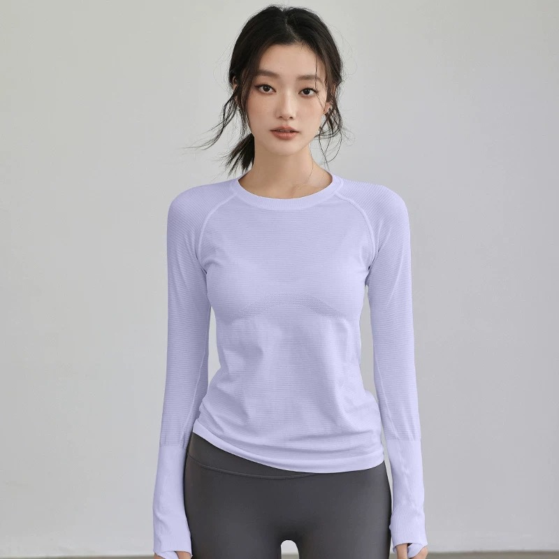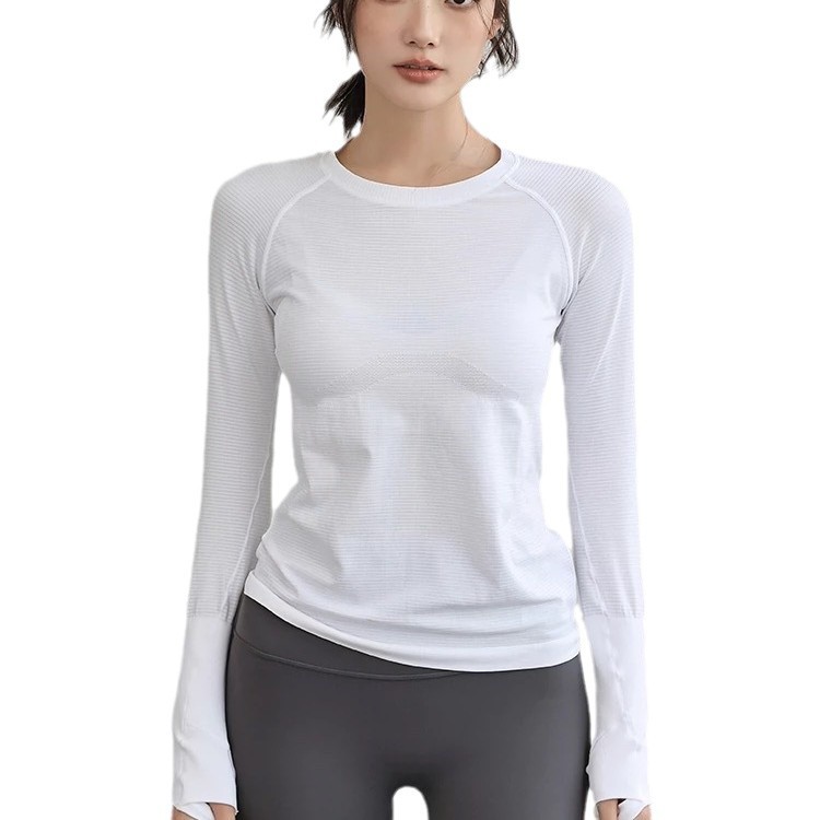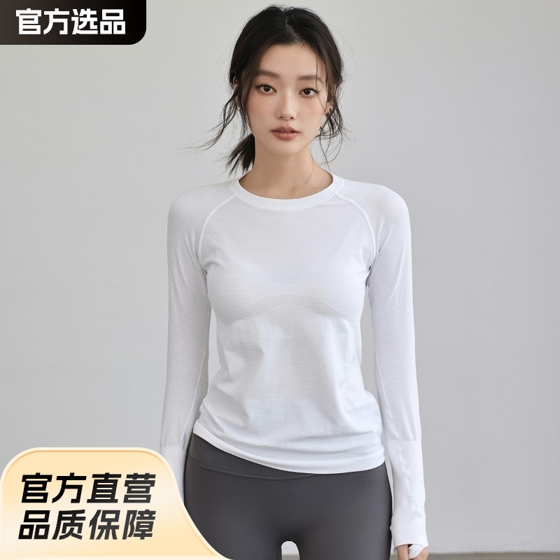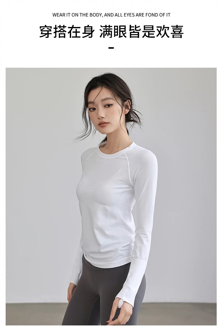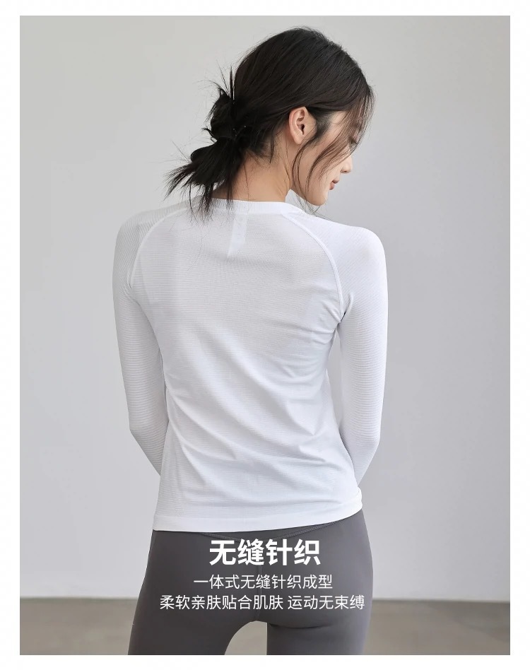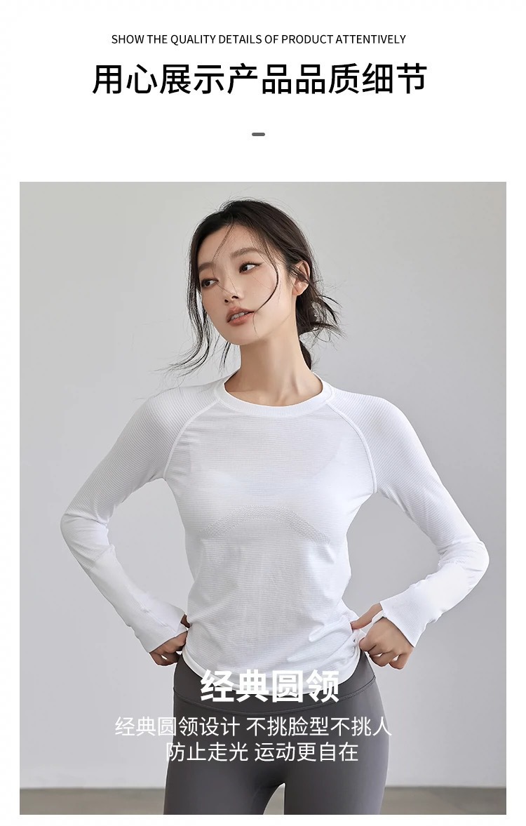Осенний и зимний новый бесшовный спортивный фитнес быстрый сухой длинный рукав тонкий круглый вырез йога тренировочный топ на открытом воздухе
