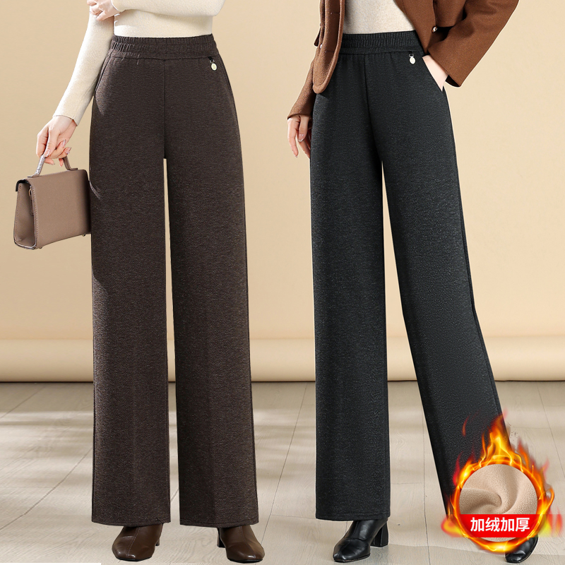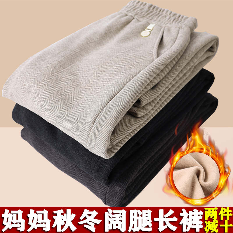 Мама брюки осенние и зимние шерстяные повседневные широкие брюки плюс бархатные толстые средние и старые женские брюки бабушки брюки прямые брюки