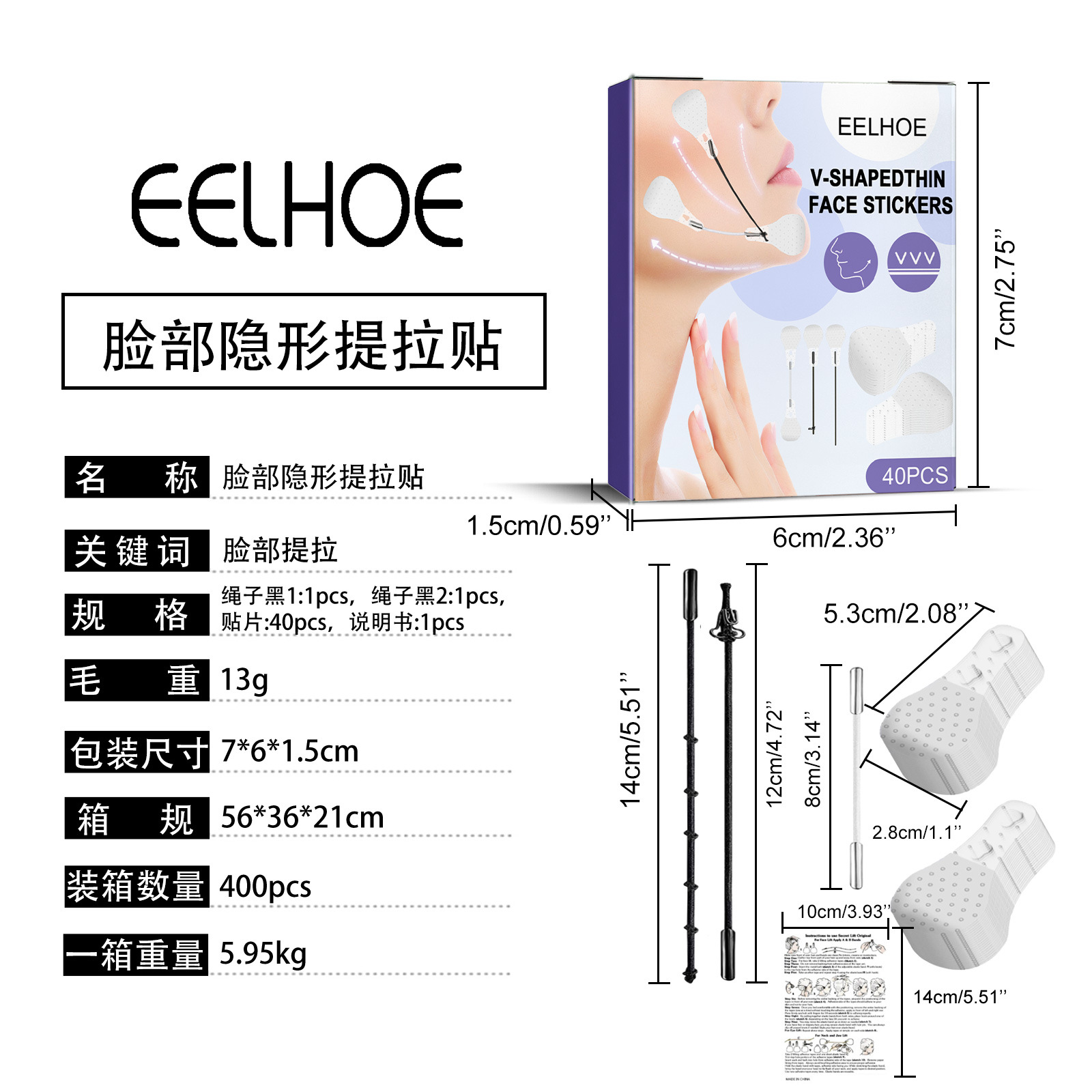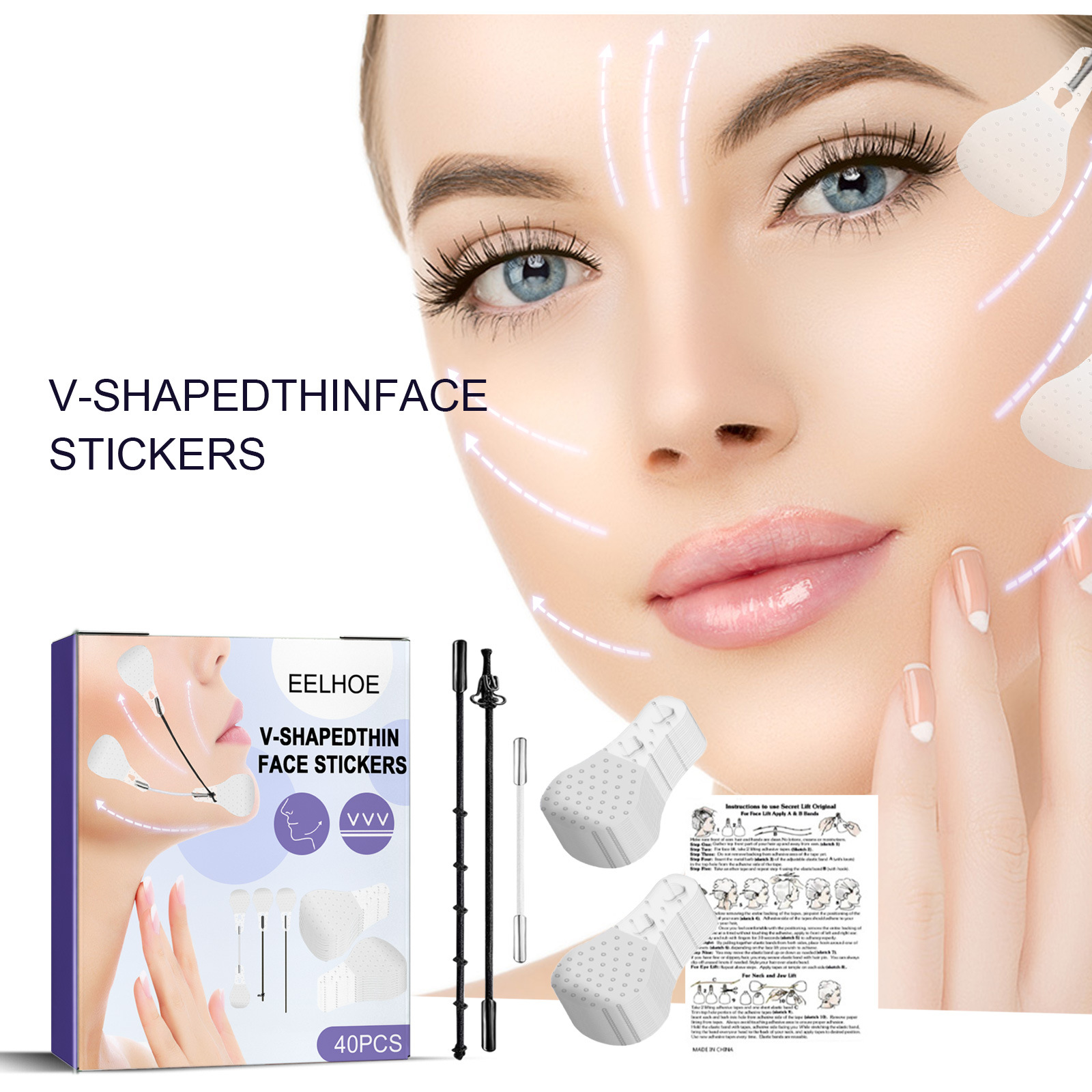 Патчи для лица EELHOE V-образной формы, невидимые лифтинг-патчи для ухода за кожей лица, патчи для коррекции контура подбородка.