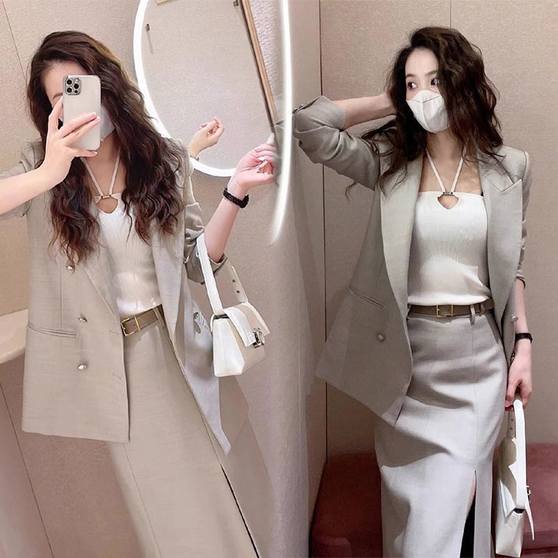 Комплект: Новинка весенне-осеннего сезона, элегантный и изысканный, профессиональный деловой костюм-блейзер в стиле Chanel с юбкой.