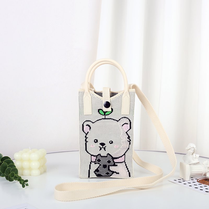 2024 милый мультфильм вязаный сотовый телефон сумка женская корейская версия дикой на плече наклонная сумка для путешествий кошелек сумка