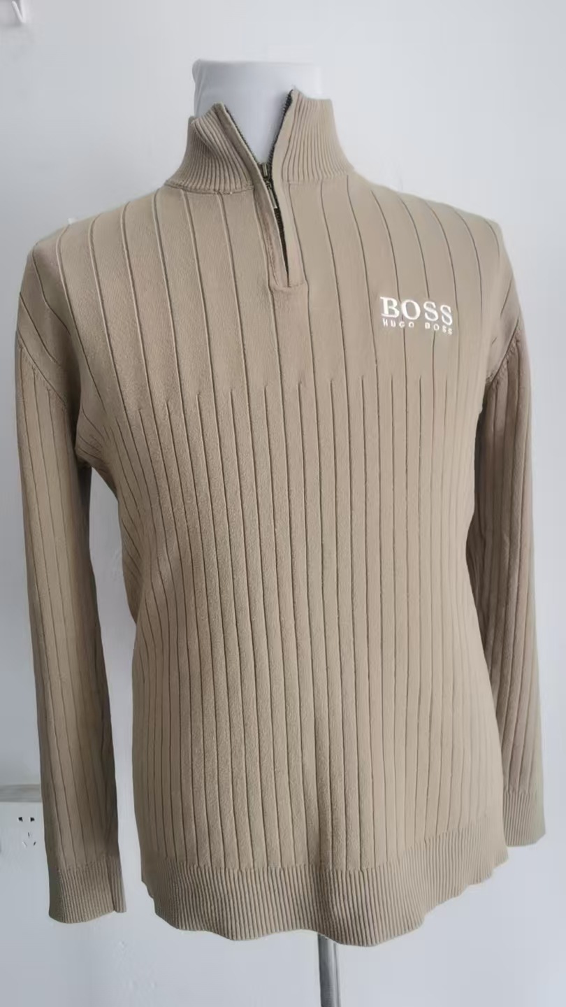 Вышитый трансграничный европейский и американский осенне-зимний мужской трикотаж, трикотаж с половиной молнии, экспорт, однотонная повседневная мужская одежда в вертикальную полоску