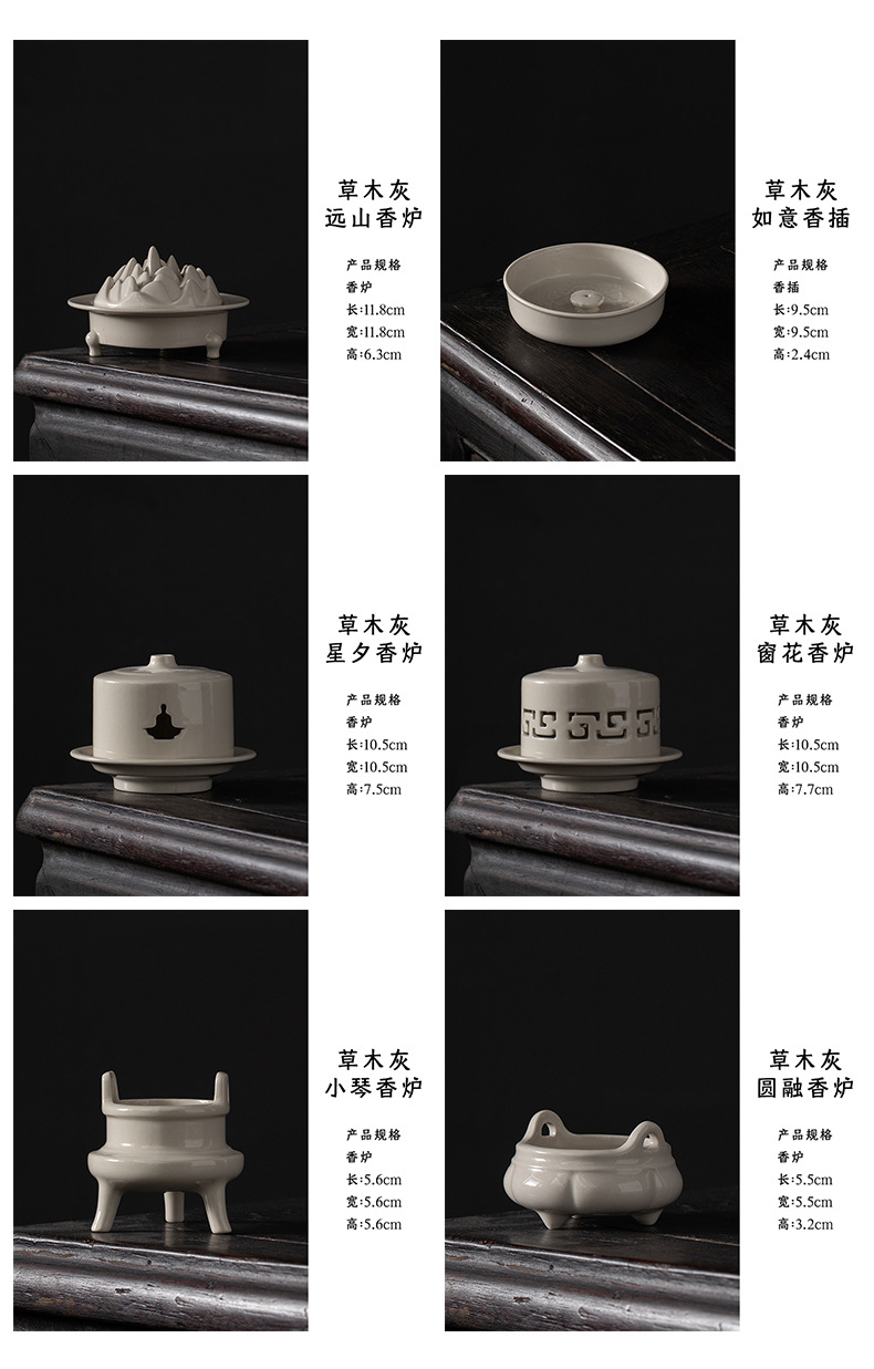 Курильница из травяной золы – Юаньская гора; Курильница травяно-серого цвета-Xingxi; Страво-серая курильница- Сяоцинь; Травяно-серая курильница-оконная решетка; Травяно-серая курильница-круглая расплавка; Курильница из травяной золы-Ruyi