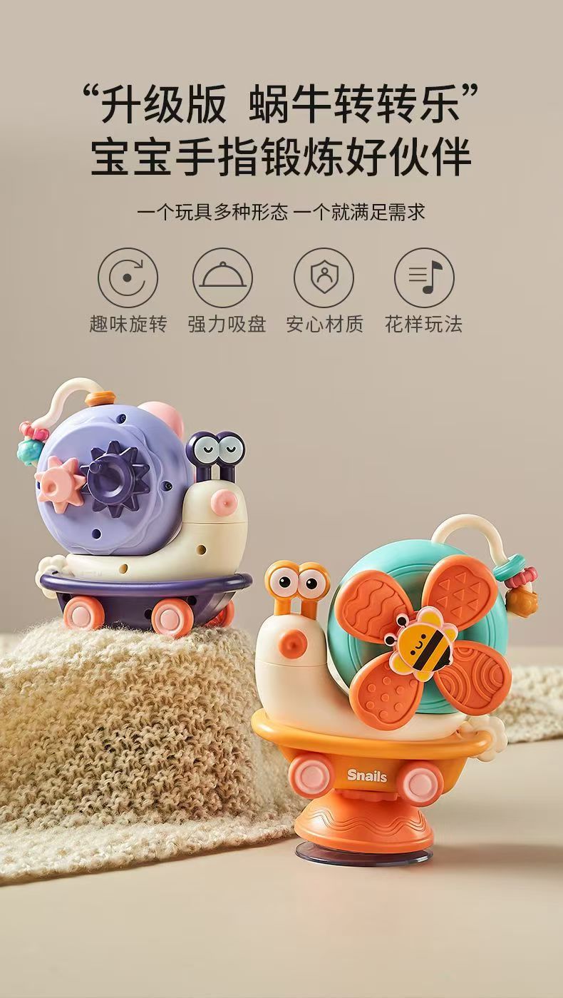 Многофункциональная развивающая игрушка-присоска для малышей: вращающийся мультяшный улитка-присоска для стульчика для кормления, игрушка для развития мелкой моторики