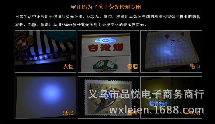 应用领域:1)医疗器械2)消毒杀菌3)油墨固化4)金属裂痕、裂纹的检测5)光触媒光源,6)验钞点钞设备,7)防伪行业,8)医疗测量和生物统计性检测 9)液压检漏。10)照琥珀,验门票。11)美甲等等。