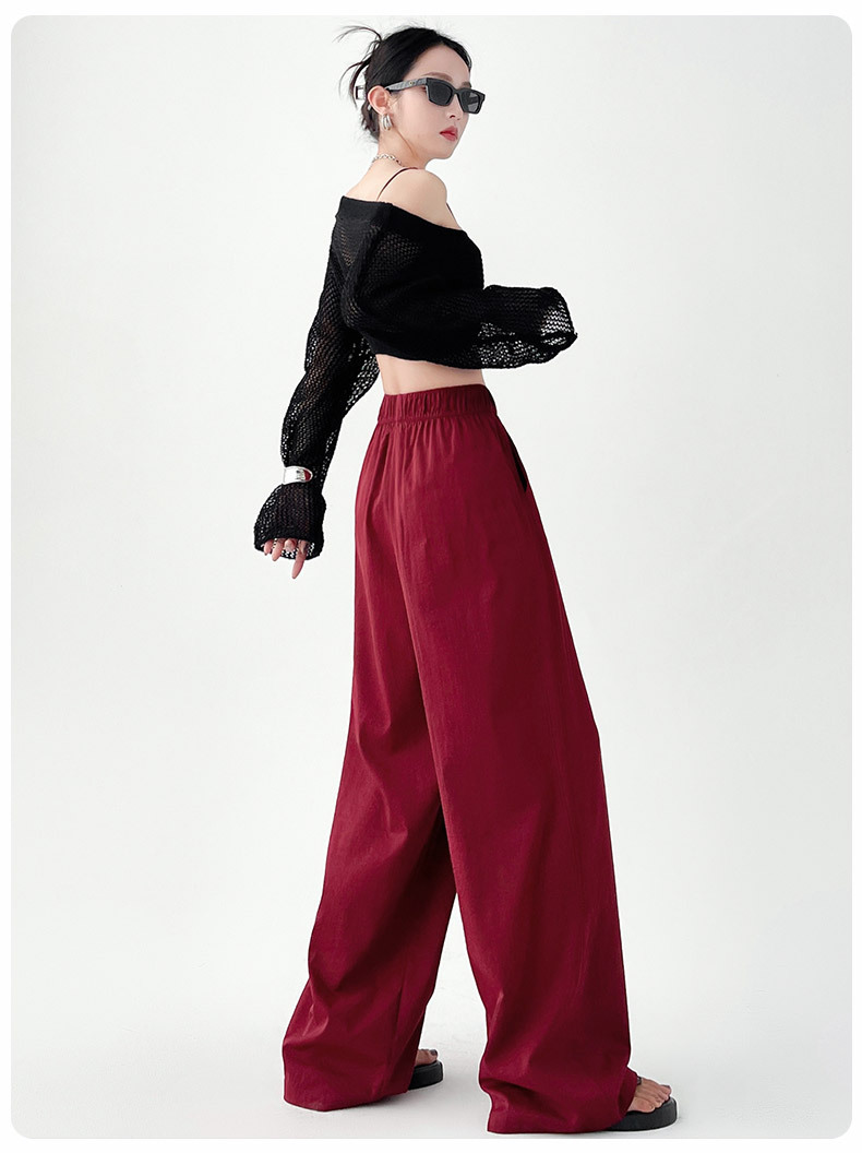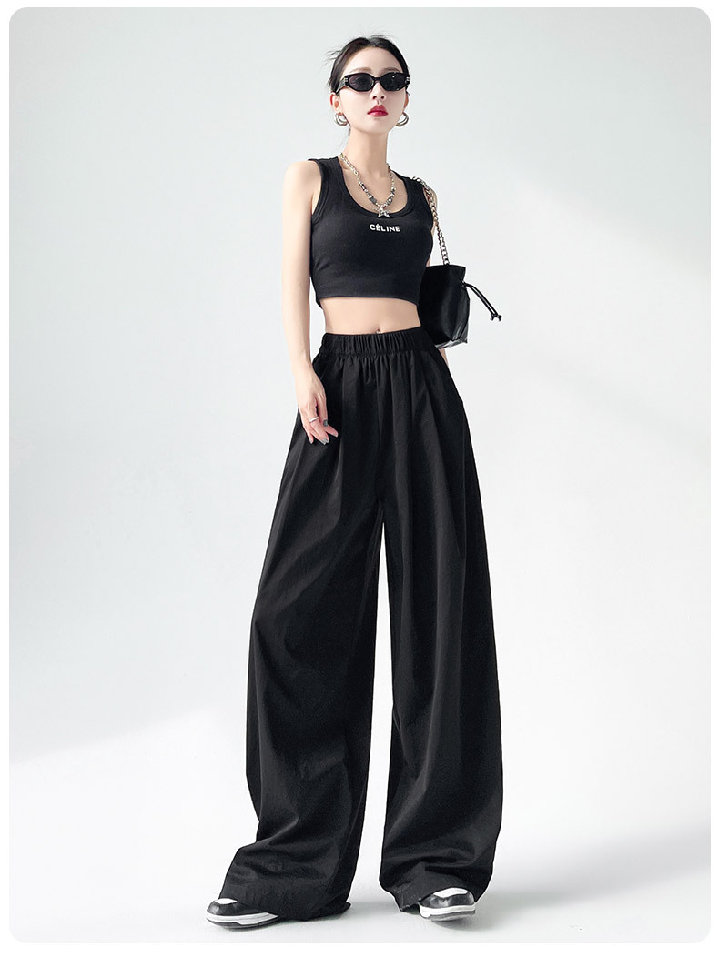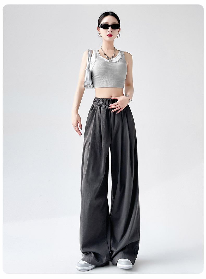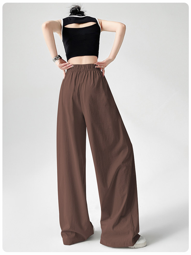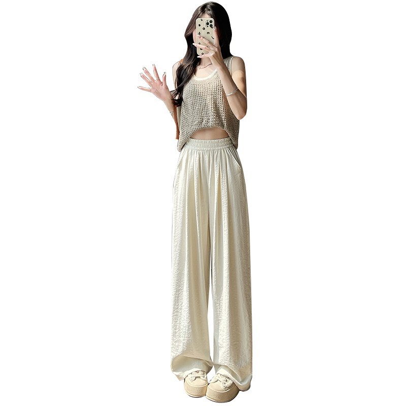 Широкие брюки женские 2024 новые высокие талии и свисания свободные повседневные маленькие весенние и летние ледяные шелки дышащие ленивые горные брюки