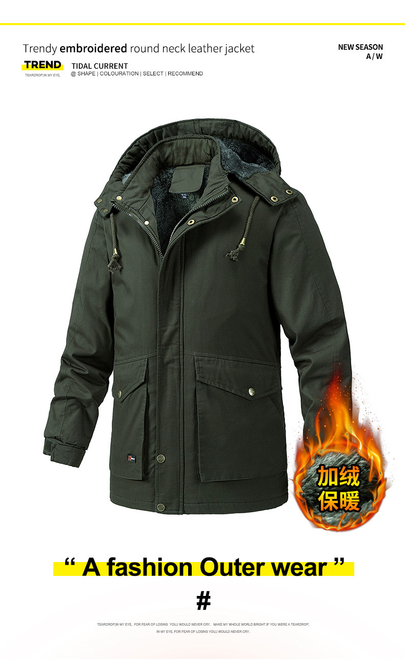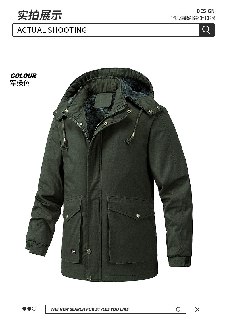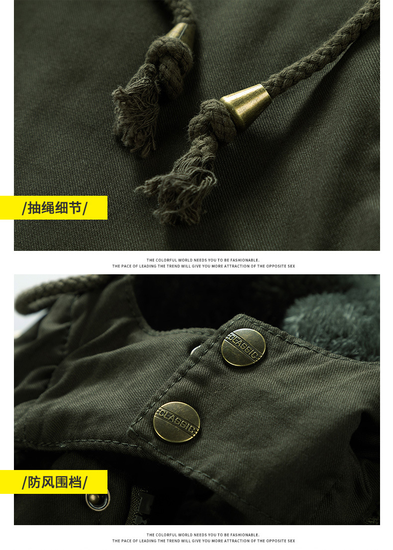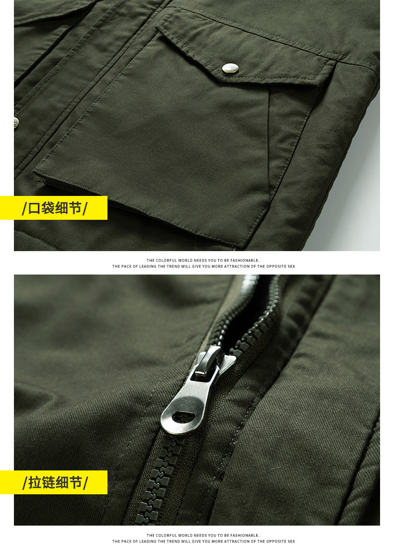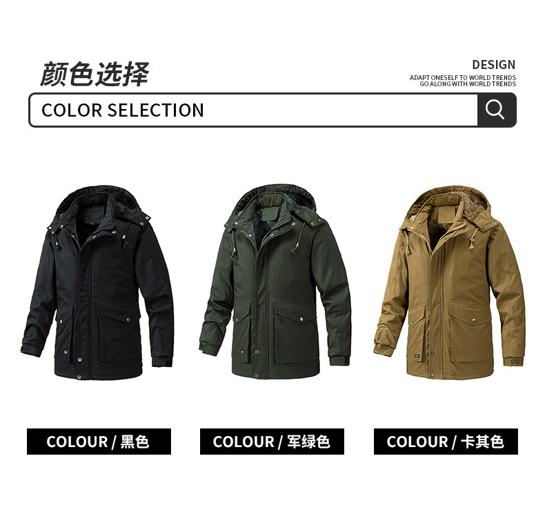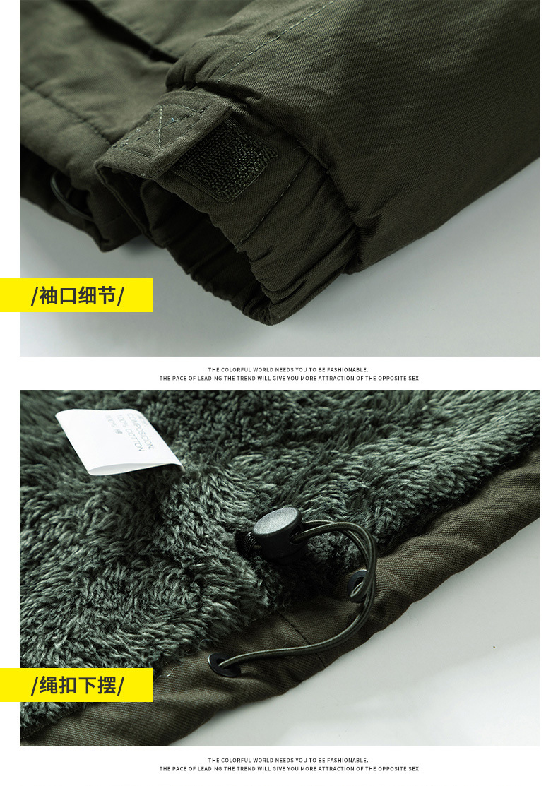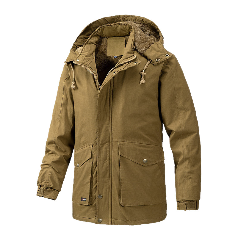 Осенний и зимний хлопок для отдыха на месте с поясом на молнии сплошной цвет комбинированный коричневый утолщенный боковой шов плащ