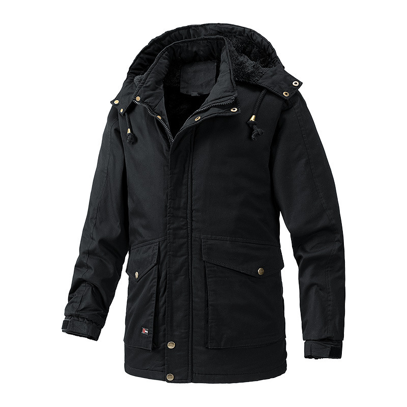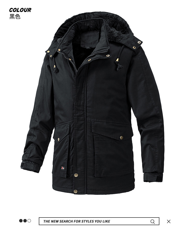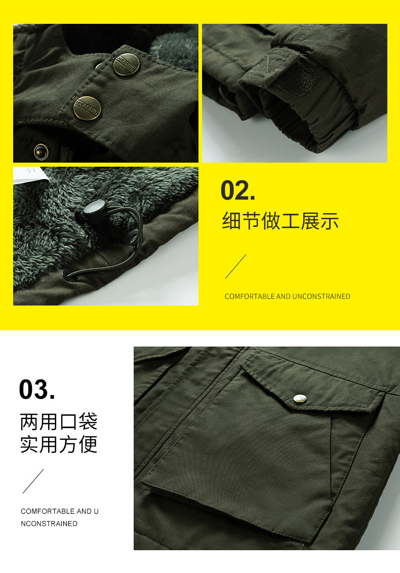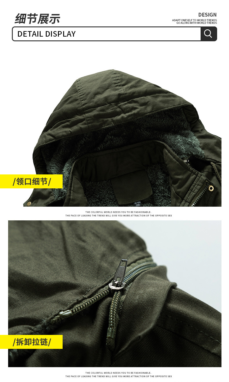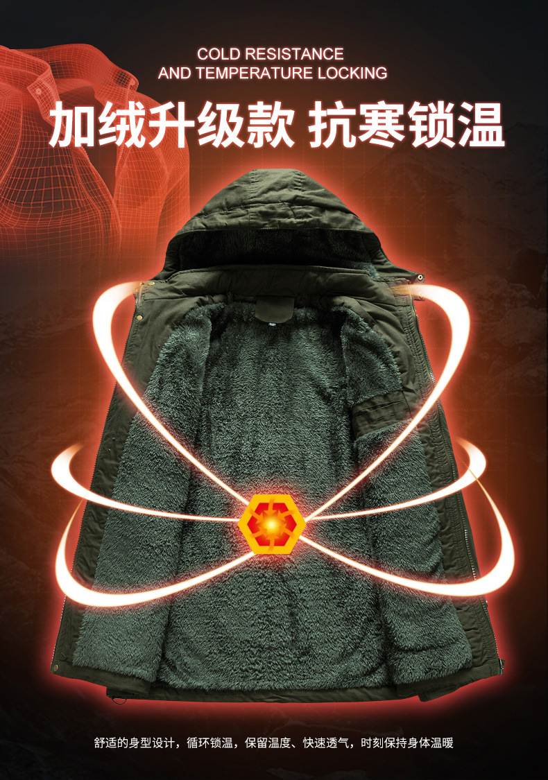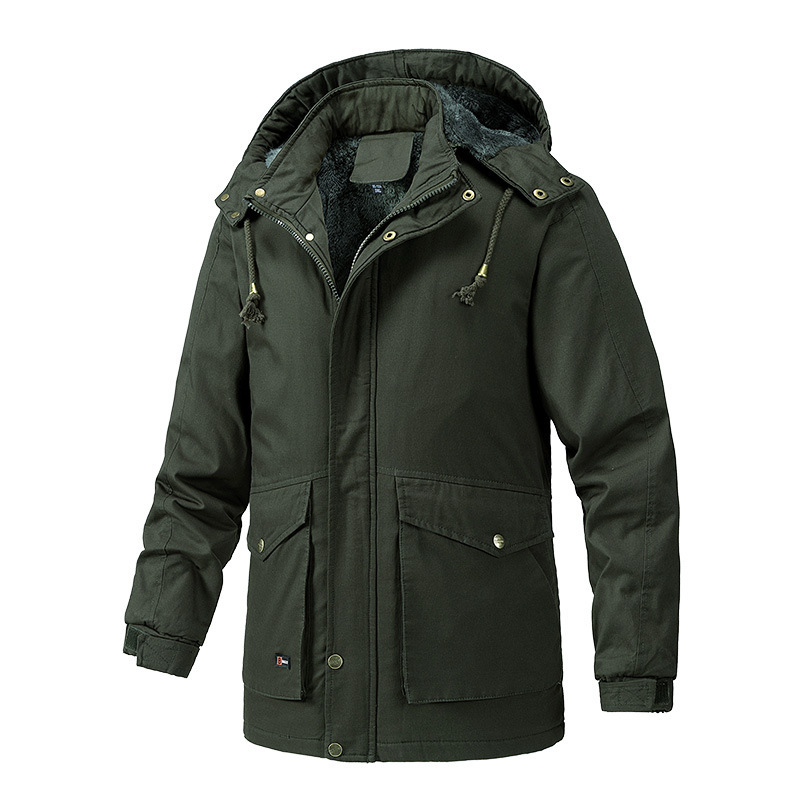 Осенний и зимний хлопок для отдыха на месте с поясом на молнии сплошной цвет комбинированный коричневый утолщенный боковой шов плащ