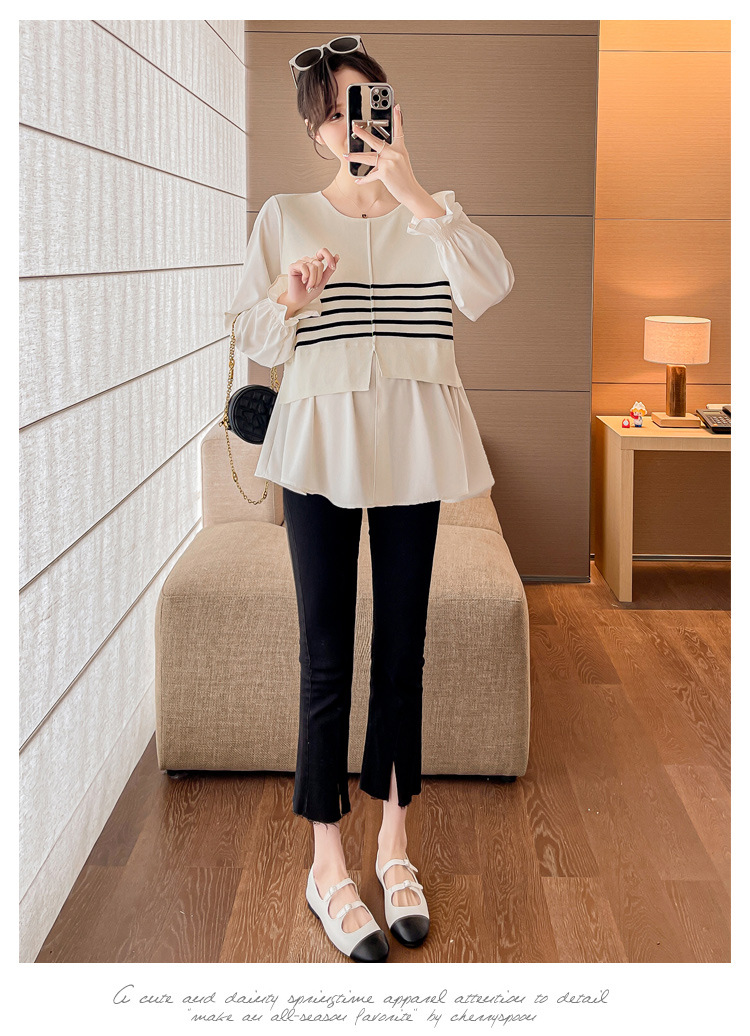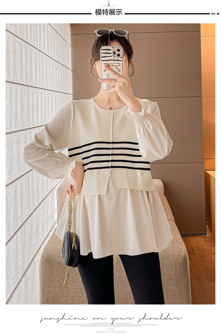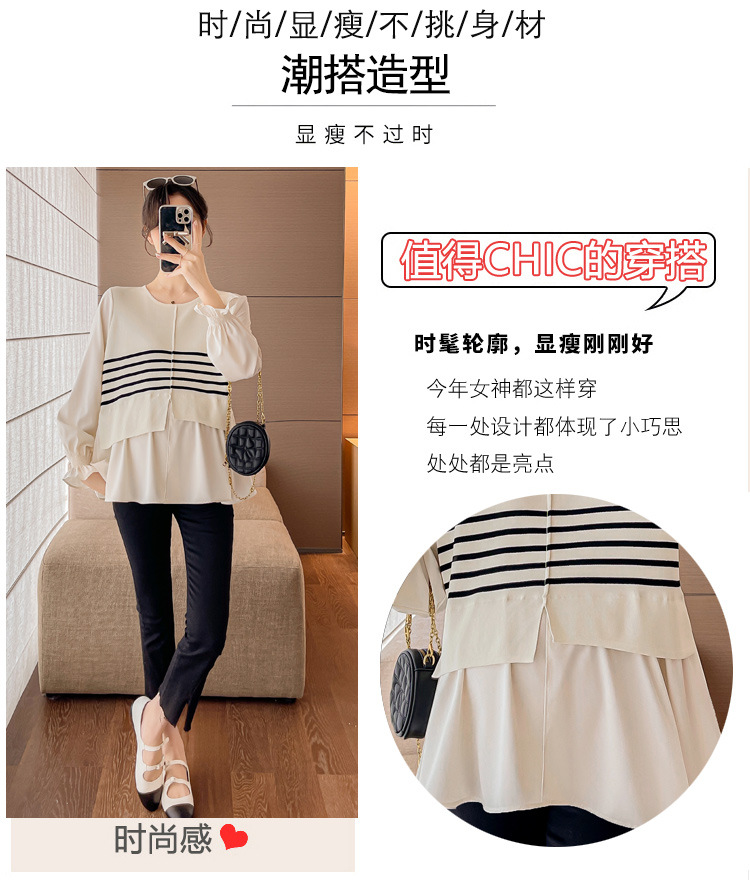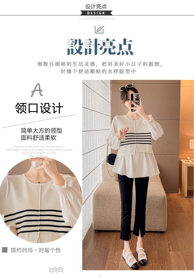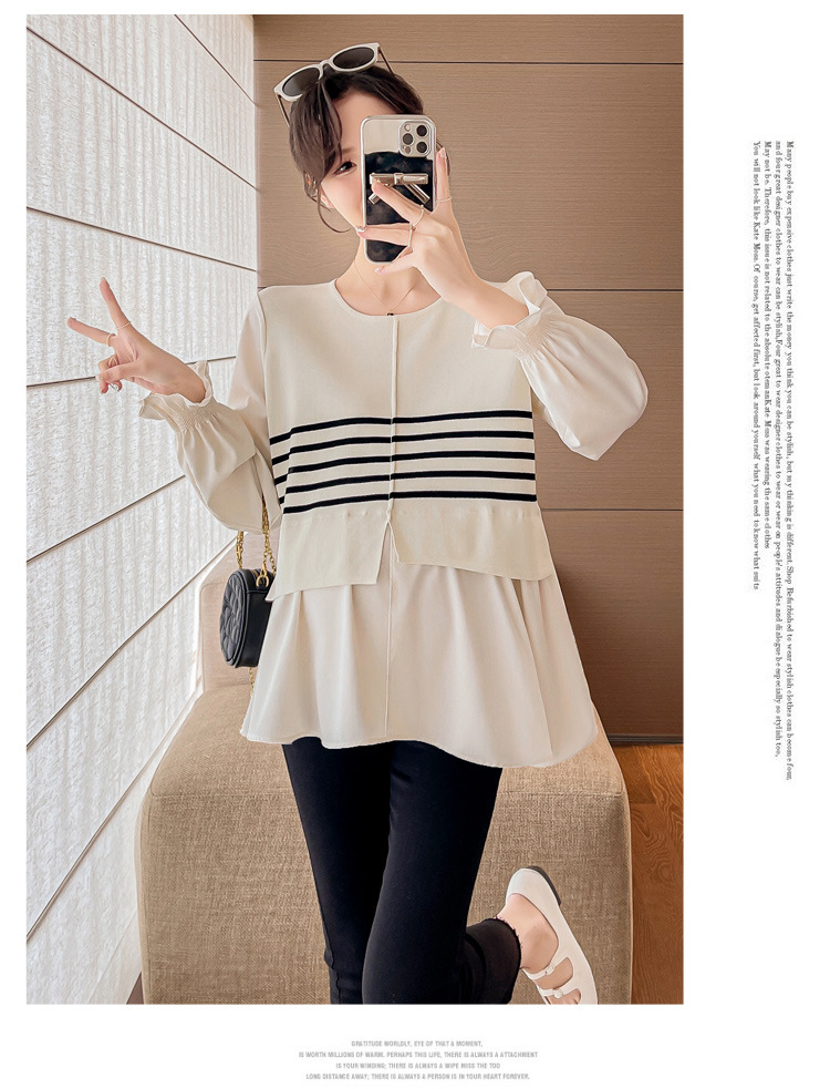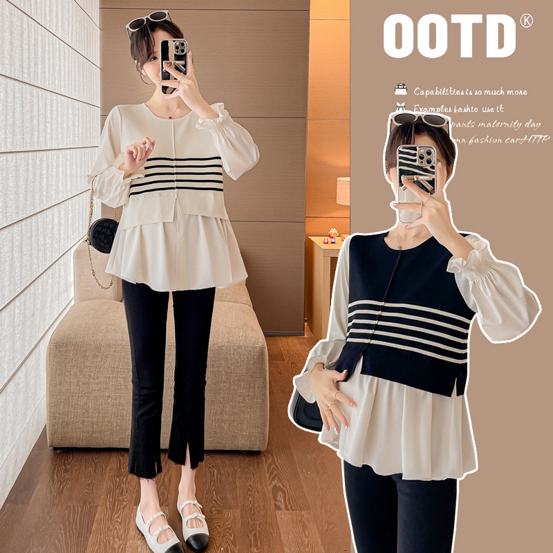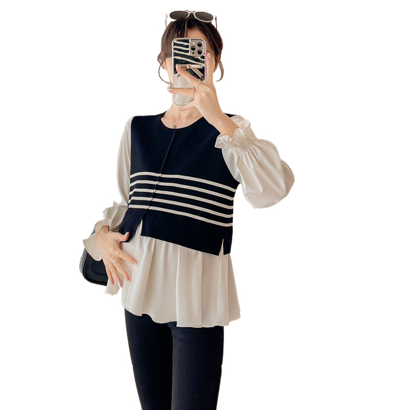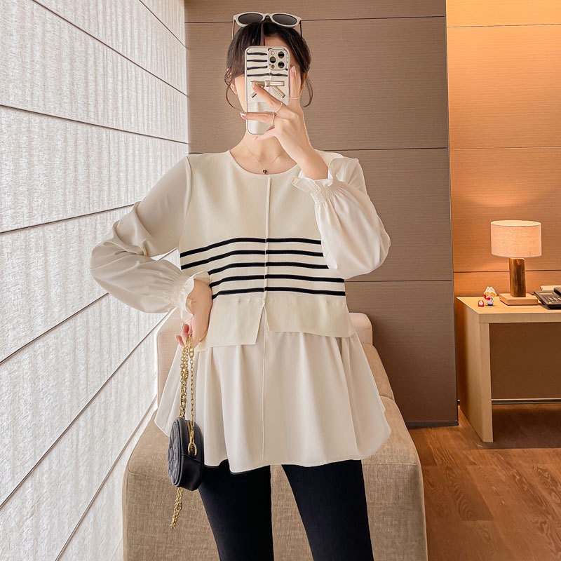 2025 новый стиль одежда для беременных весенняя одежда свободная полоска для беременных туника сшитые беременные женщины поддельные две рубашки куклы рубашки