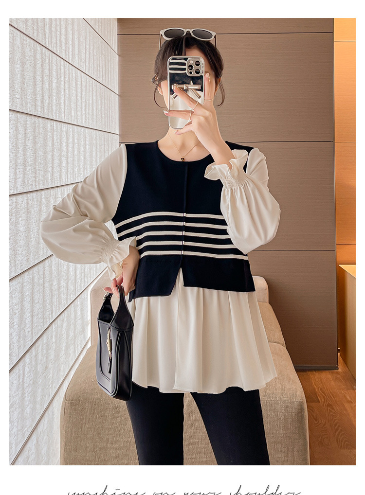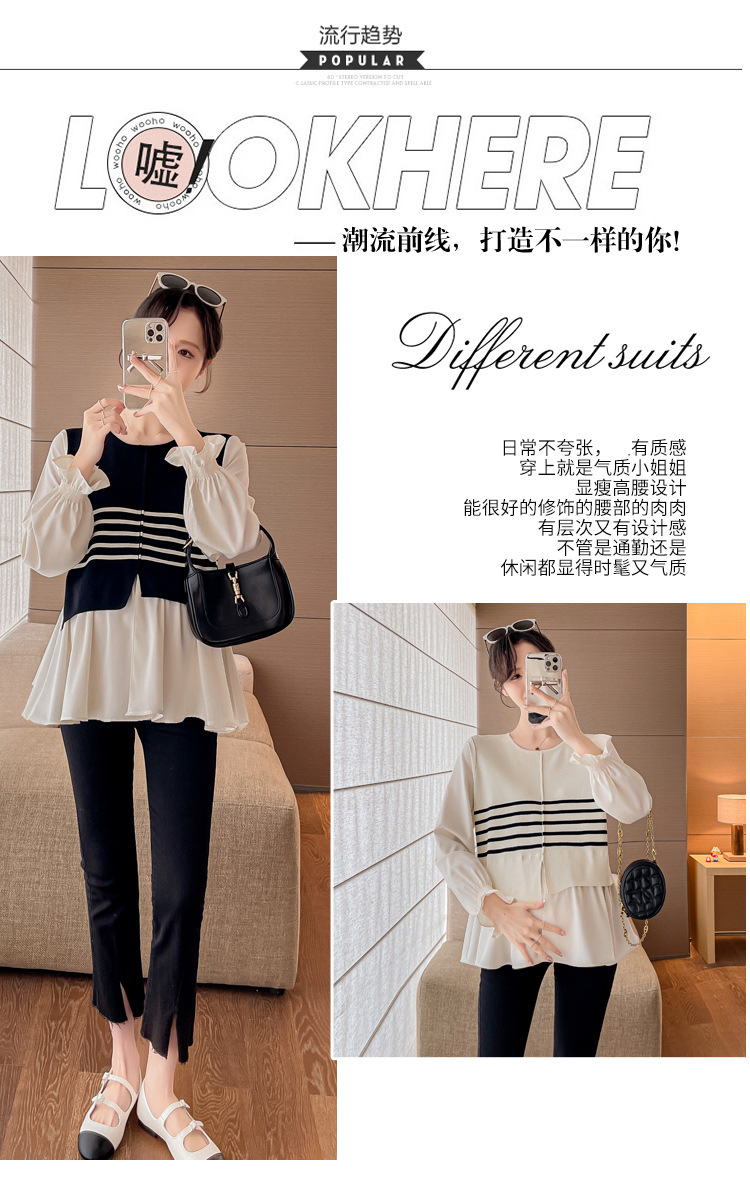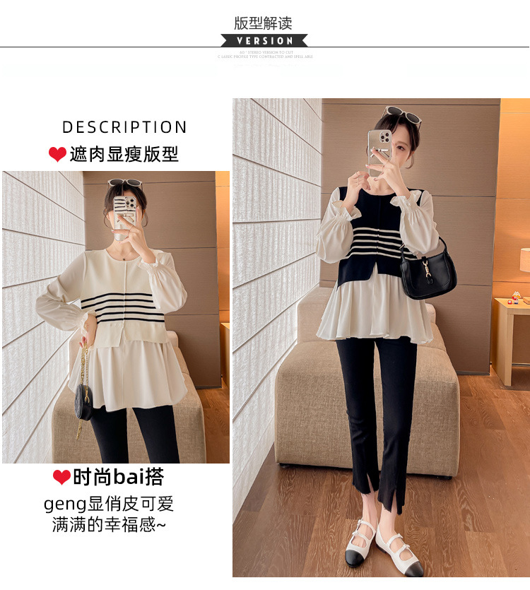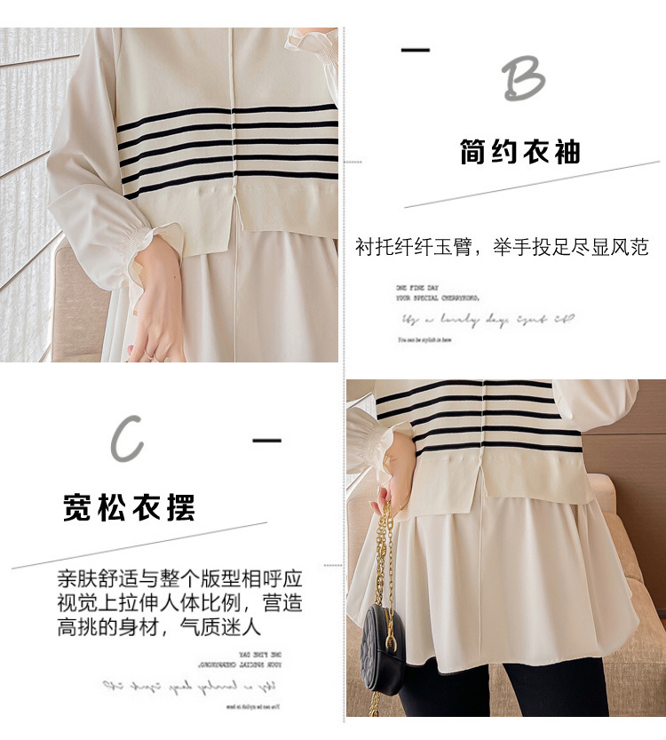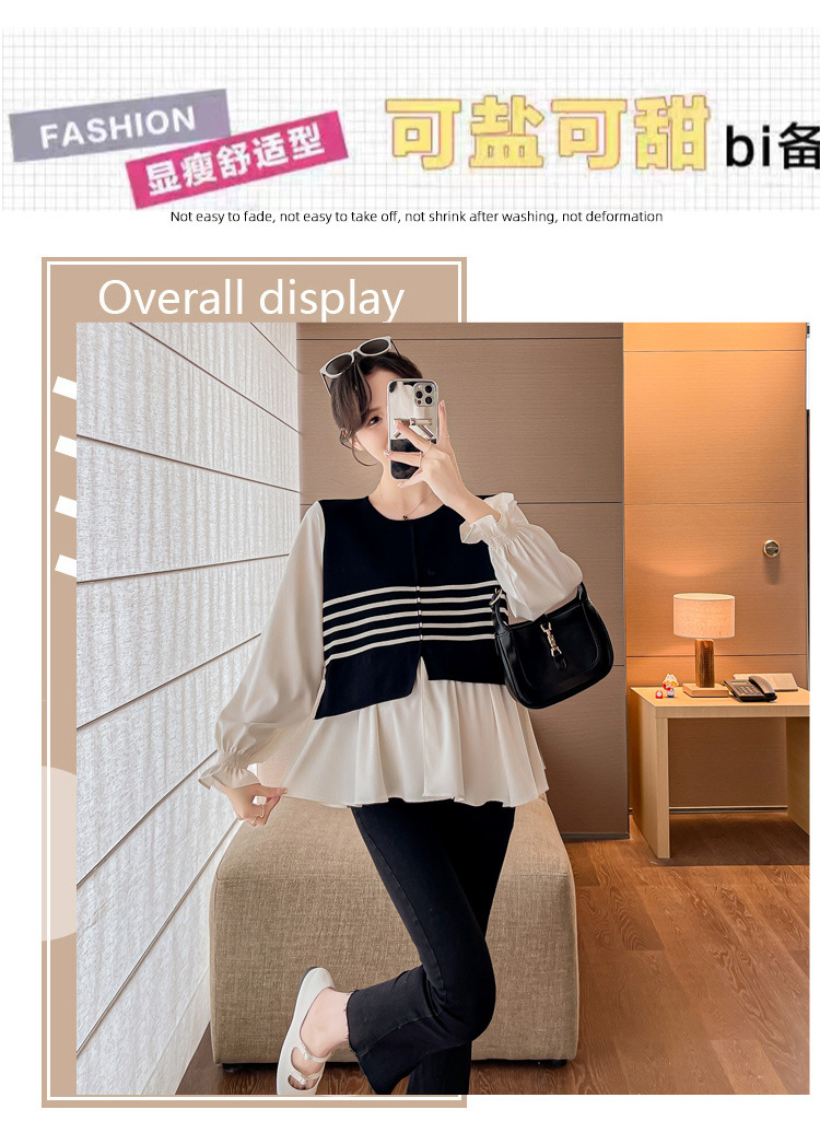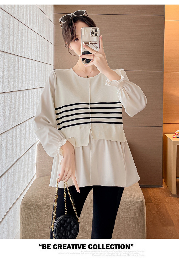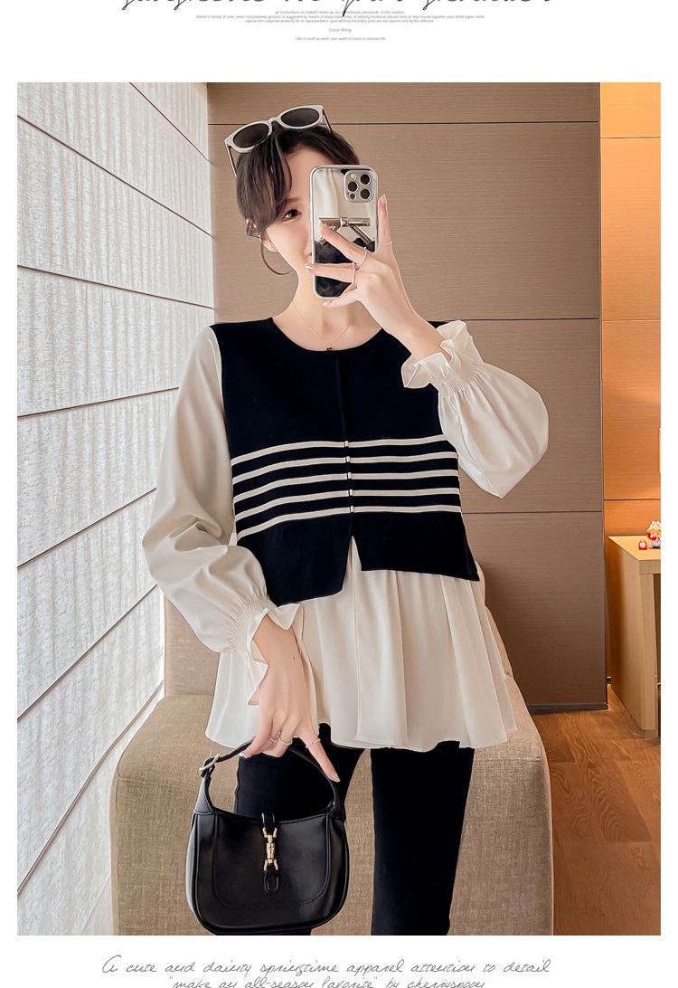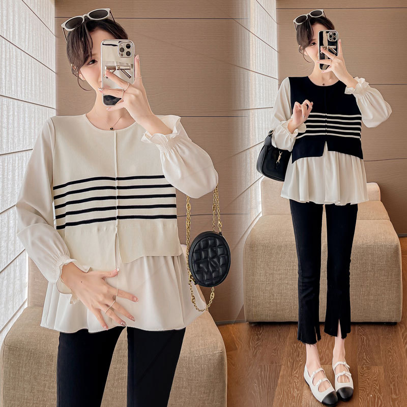 2025 новый стиль одежда для беременных весенняя одежда свободная полоска для беременных туника сшитые беременные женщины поддельные две рубашки куклы рубашки