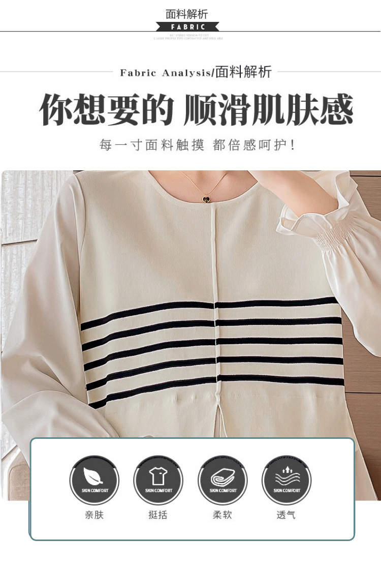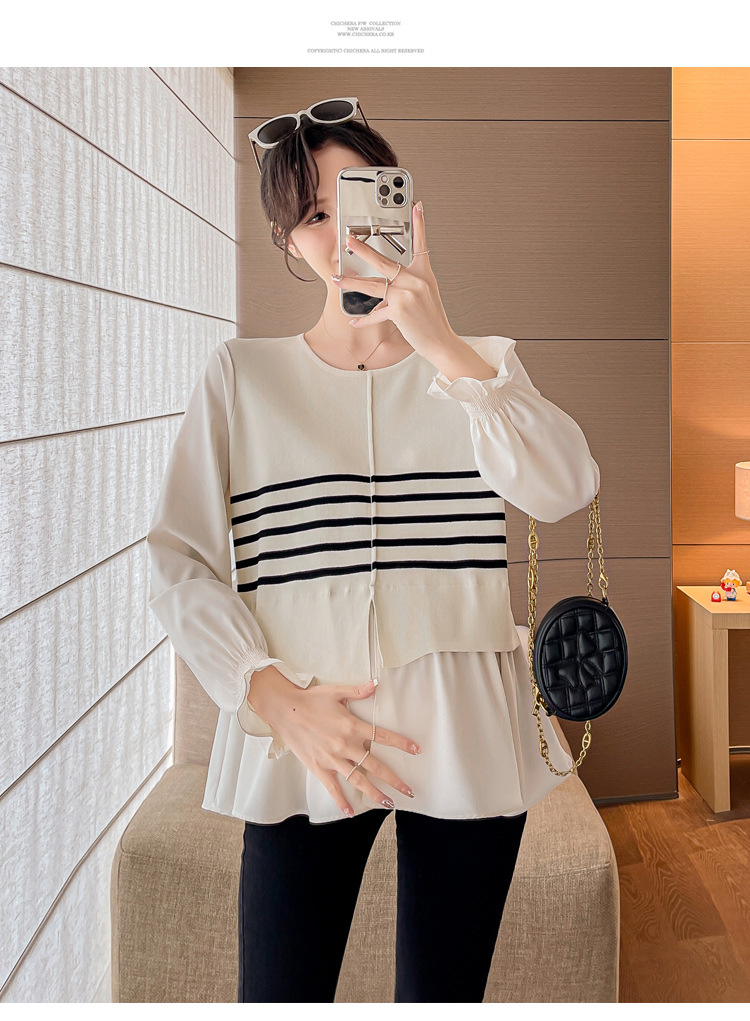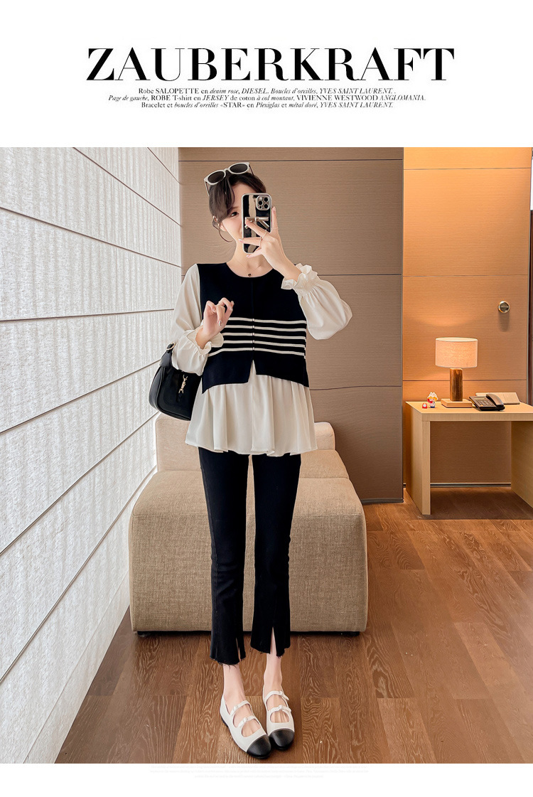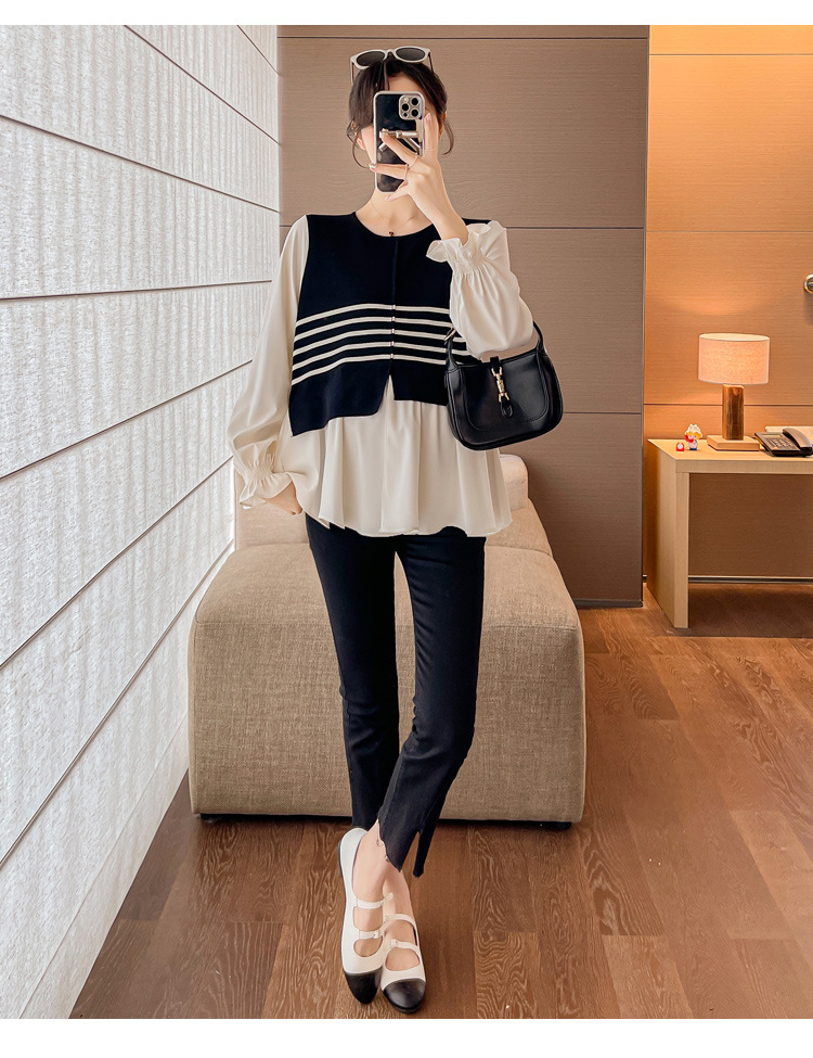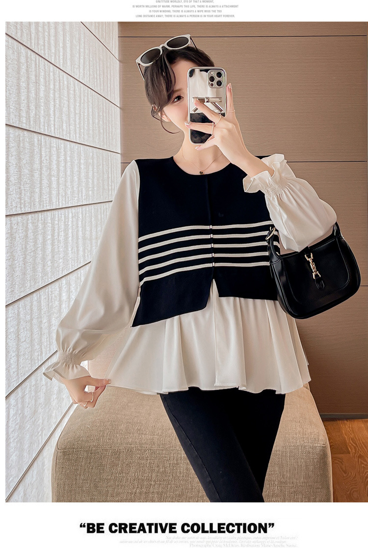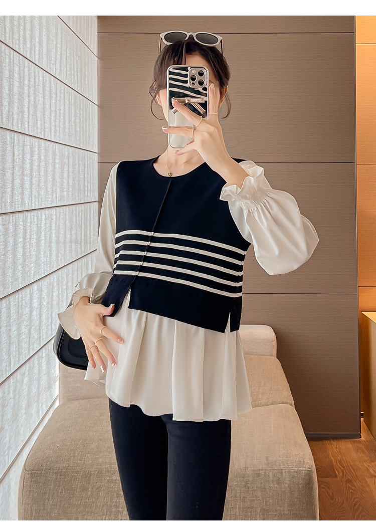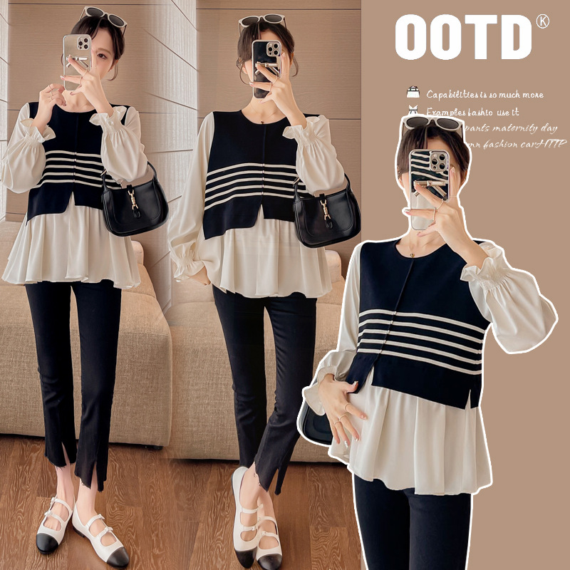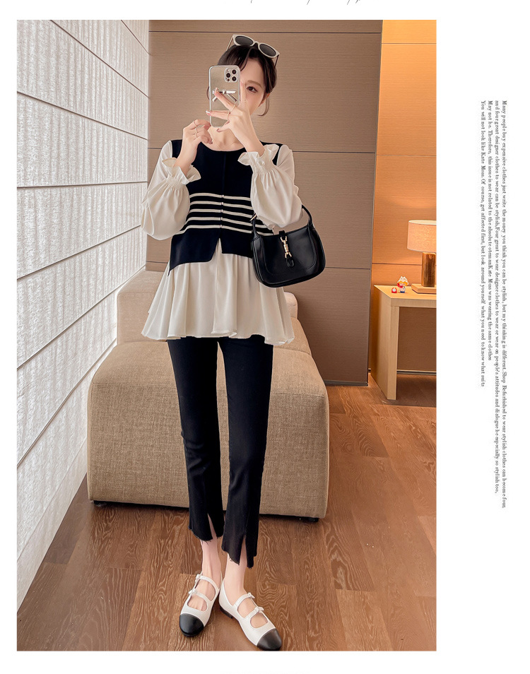2025 новый стиль одежда для беременных весенняя одежда свободная полоска для беременных туника сшитые беременные женщины поддельные две рубашки куклы рубашки