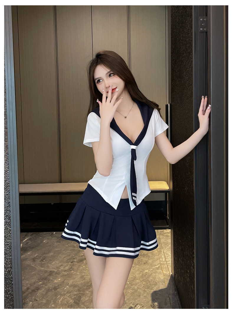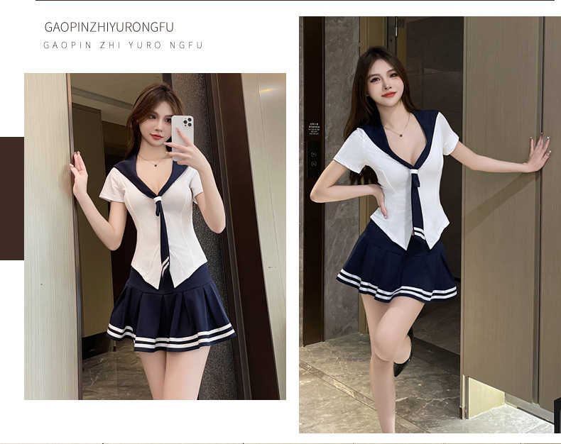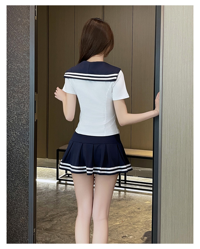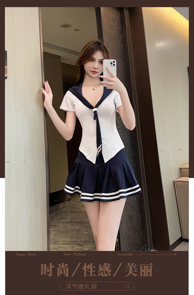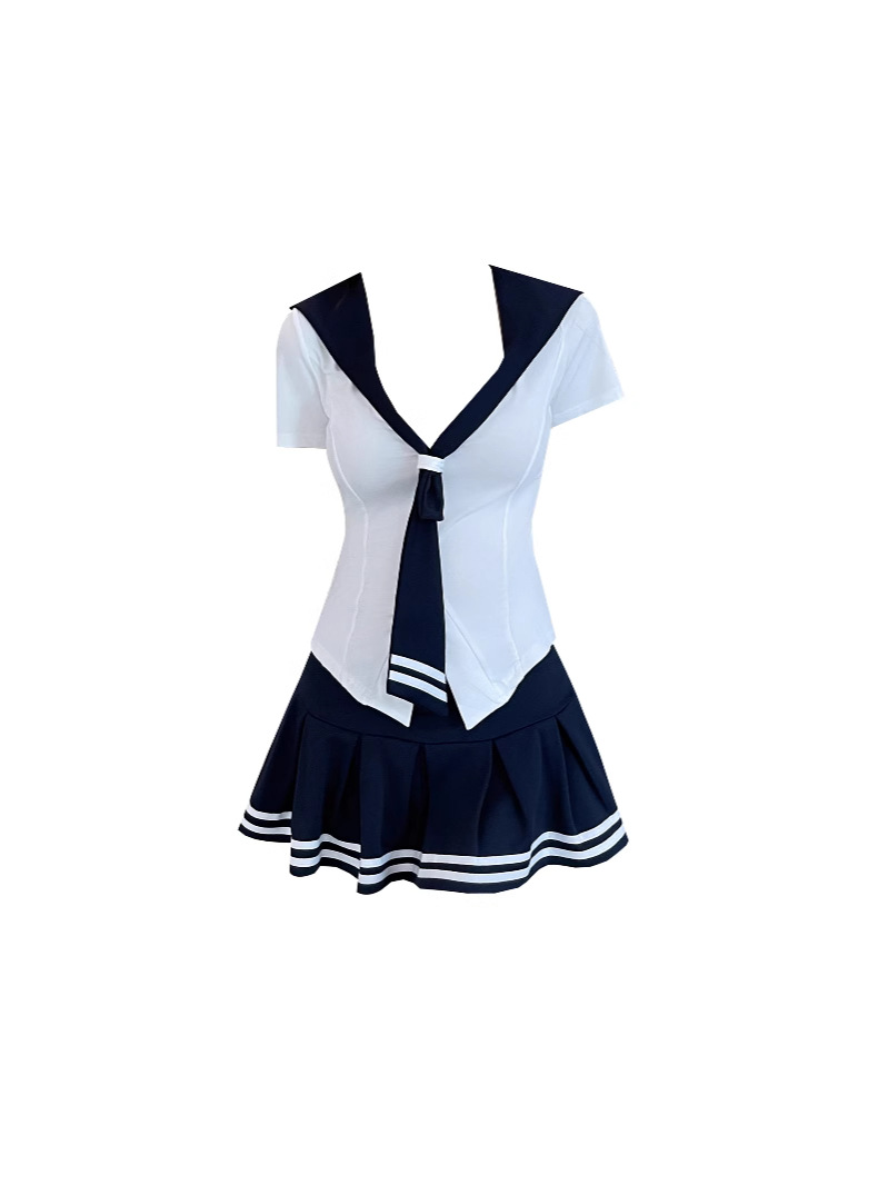 Сладкий уменьшенной возраст, топы с морским воротником, женский осенний тонкий с длинными рукавами, нижняя рубашка, талия с короткими рукавами, тонкая юбка