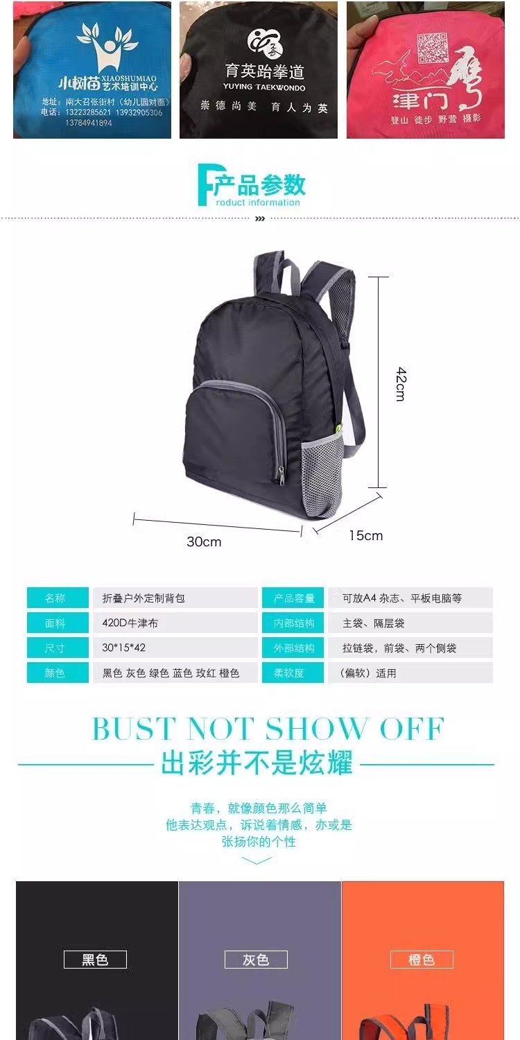 Сумка-рюкзак складная с индивидуальным логотипом для корпоративных мероприятий, рекламных акций, подарков, туристических агентств, обучения, простая в использовании