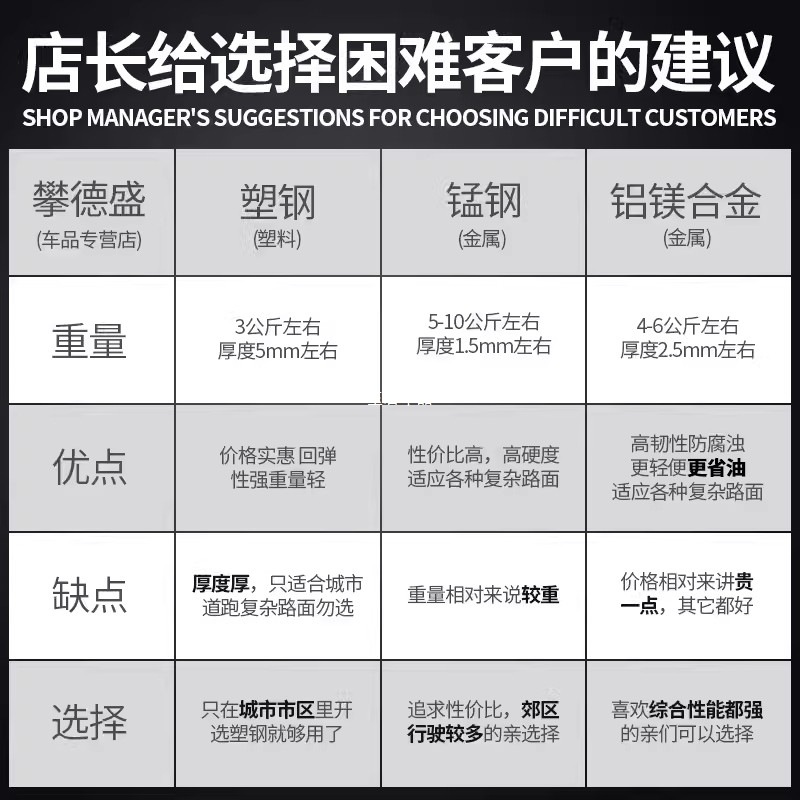 Марганцевая сталь, алюминий, магниевый сплав, углеродистая сталь