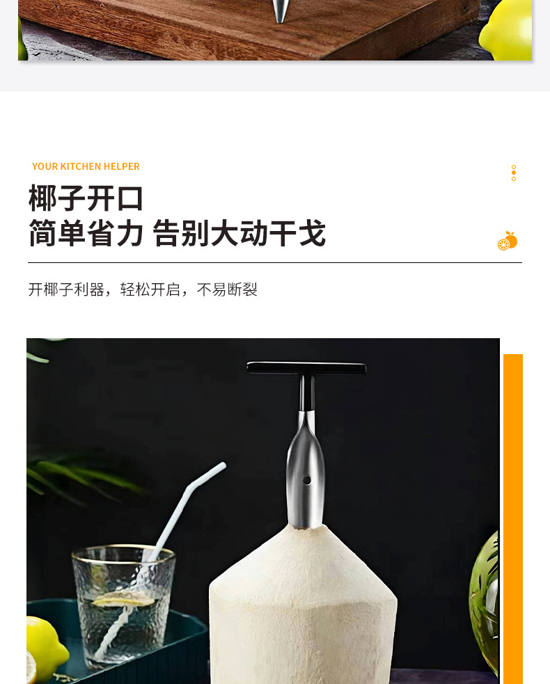 Фабрика оптовая продажа кокосового ореха из нержавеющей стали открытый кемпинг кокосового зеленого мяса кокосового ореха открыватель кокосовой скорлупы открытый кокосовый гаджет