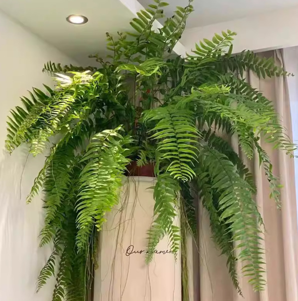 Бостонский папоротник в большом горшке, длиннолистный подвесной папоротник, комнатное растение для гостиной, зеленое растение из тропического леса в горшке, потолочный папоротник